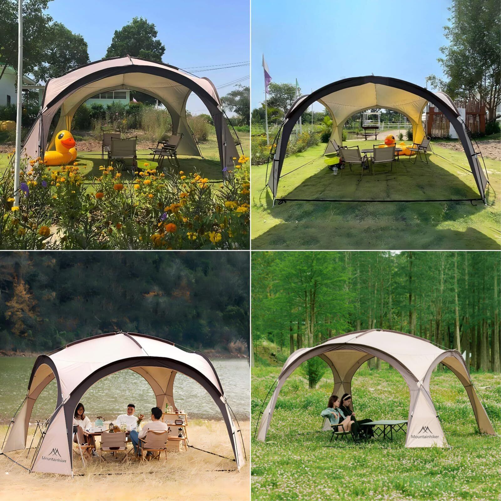 M Mountainhiker シェードテント、150Dオックスフォードポリエステル耐久性のあるシェードテントアウターテント、防風性と防水性のターポリン、複数人に適しています、4mx4mの広いスペース、ビーチシェード、組み立てが簡単、夏の屋外キャンプに最適