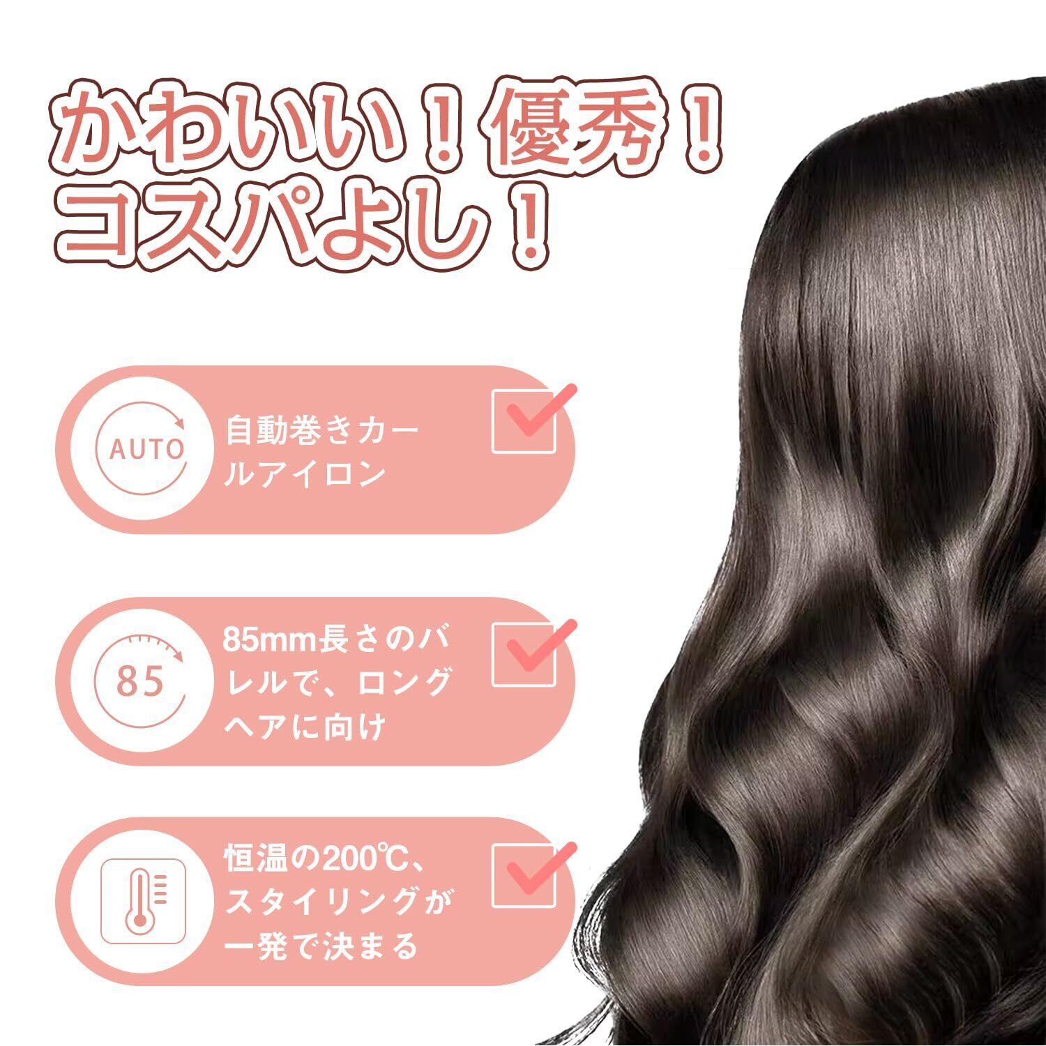 左右回転ボタンが付き、内巻きや外巻きを自由自在に選択でき;恒温の200℃セット、温度調整なし、カールを長時間キープ。