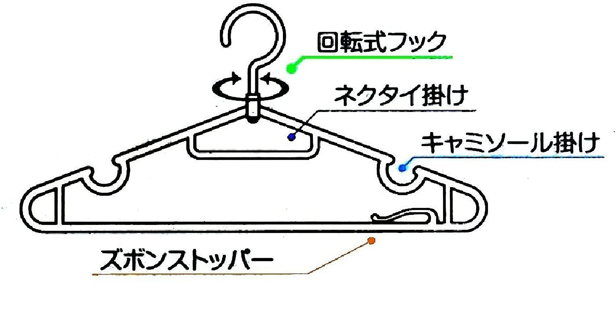 フックが回転する首振りタイプだから鴨居やカーテンレールにも掛けられる ネクタイ・スカーフ掛け付き キャミソール・タンクトップ等の肩ひも掛け付きスラックスストッパー付き お買い得10本セット