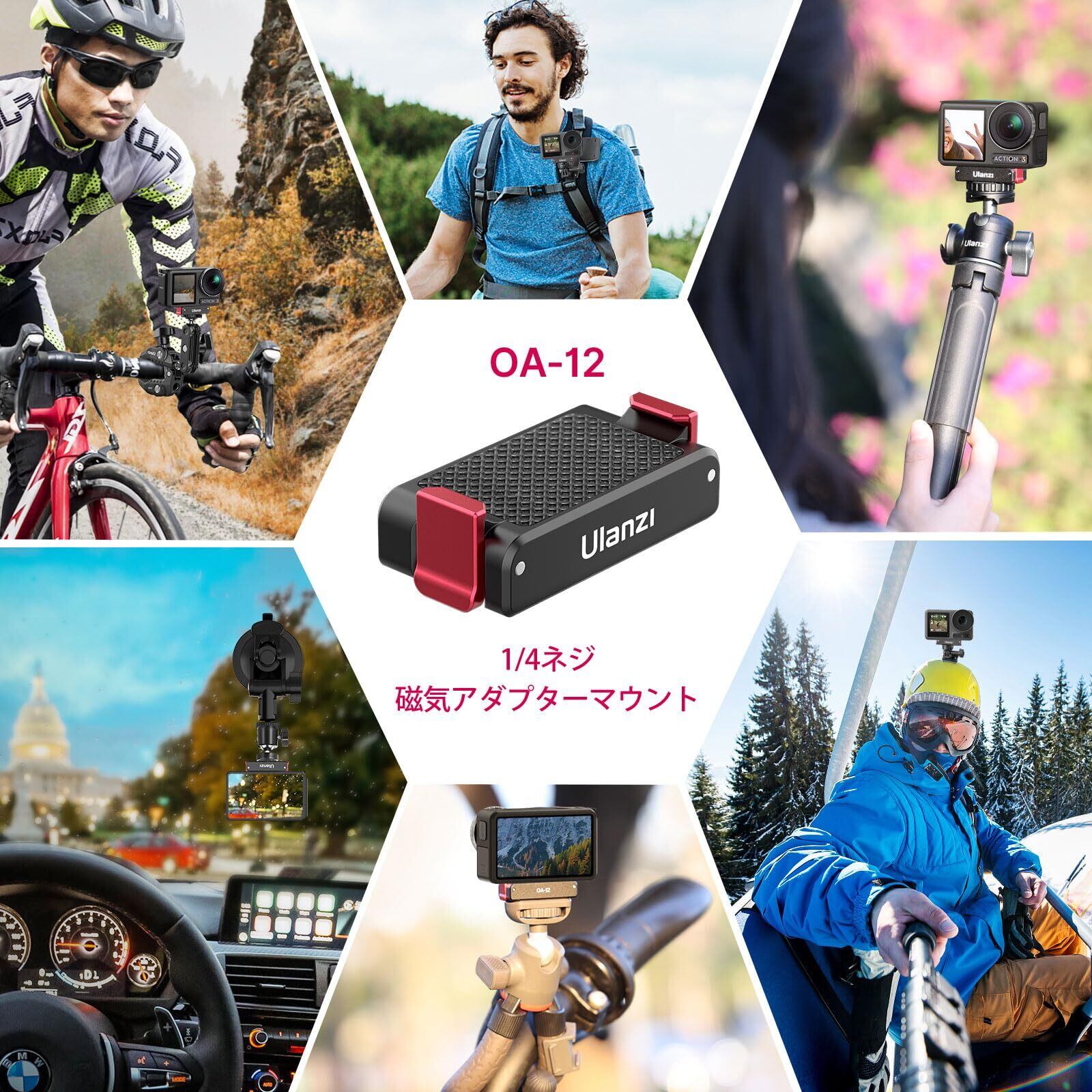 【ULANZIのアクセサリーシリーズ】 *OA-11デュアルインターフェース磁気マウント *OA-12 1/4ネジ穴磁気アダプターマウント *MT-50 マグネット式三脚 *U-180 マグネット式自由雲台