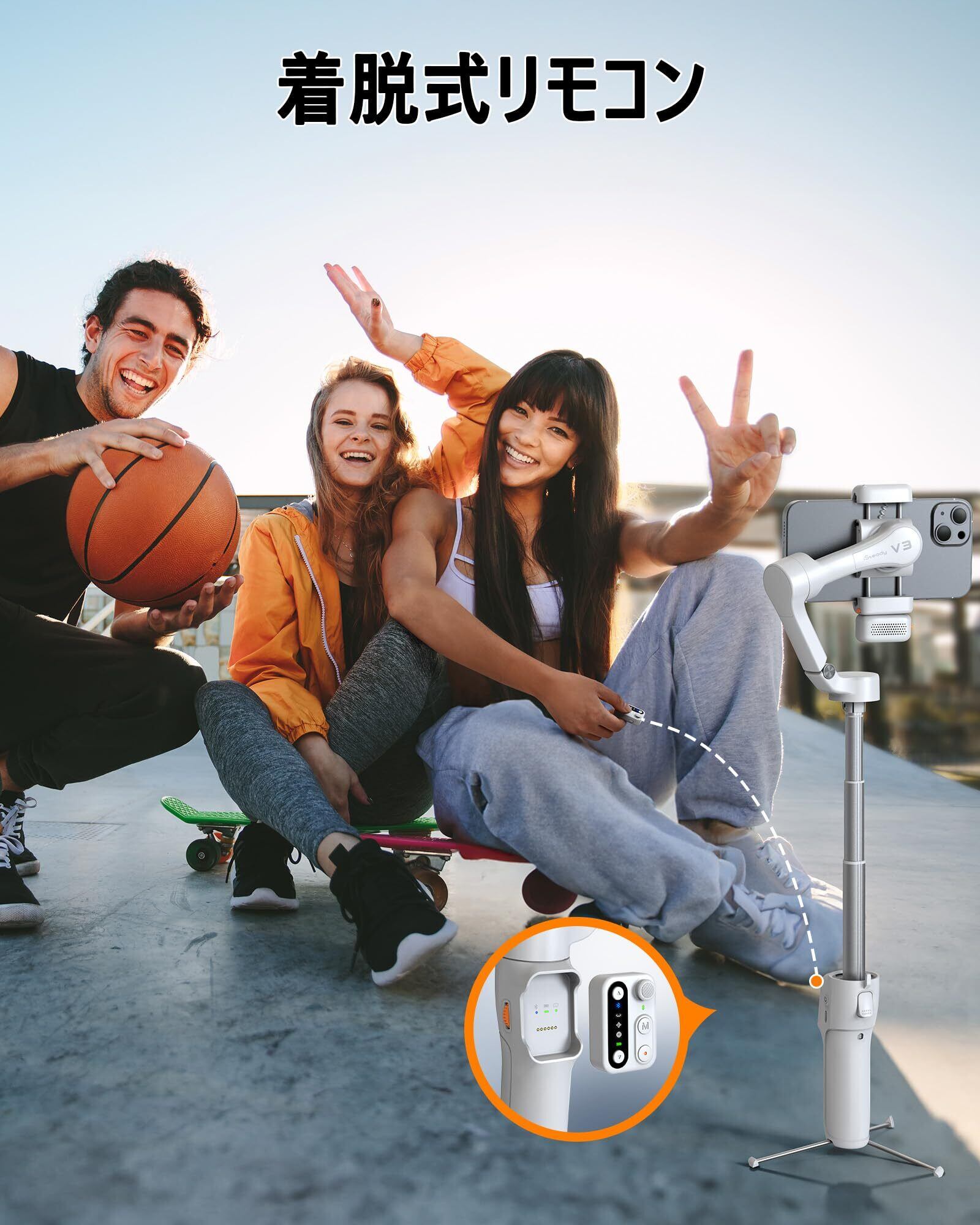 【脱着式リモコン付き&手のポーズ撮影で】 hohem新機種V3には Bluetoothリモコンが付いており、遠くからでも簡単に撮影することができます。常にジンバルを手に持つ必要がないので、両手を解放できます。一人旅で写真を撮る時やパーティーの集合写真を撮るのに便利です。また、アプリのAI機能より特定の手のポーズを認識でき、遠くからジェスチャー操作で写真を撮ることができます。SNSの初心者や「いいね」を取りたい方におすすめなアイテムです。