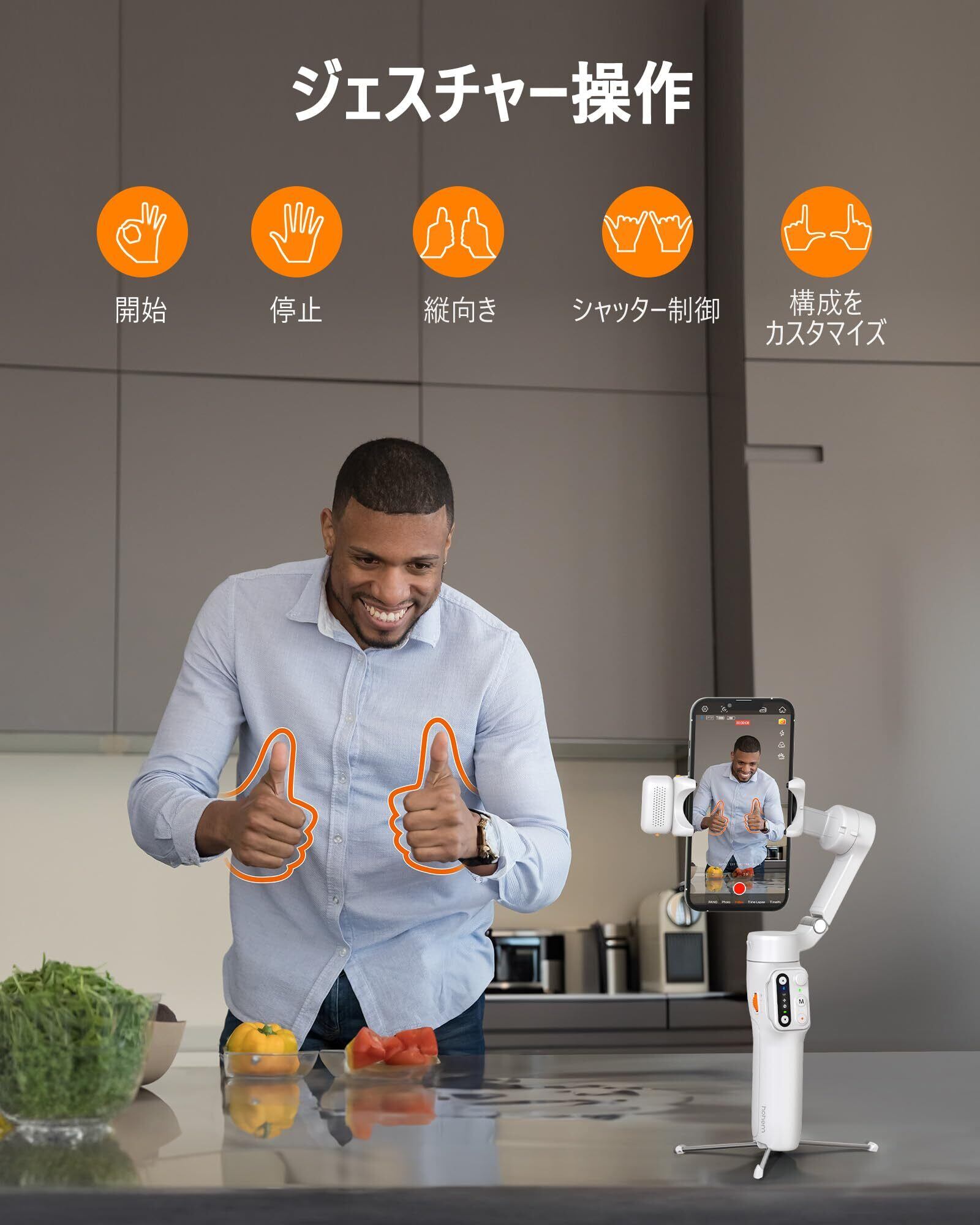【新着商品】hohem V3 ジンバル 3軸スマホジンバル AI自動追跡 13時間駆動 ジェスチャー撮影 3階段調光ライト&美顔 リモコン付き 延長ロッド & 三脚内蔵 手ブレ補正 スタビライザー 折りたたみ式&軽量 Android&iPhone用ジンバル 日本語対応アプリ ホワイト