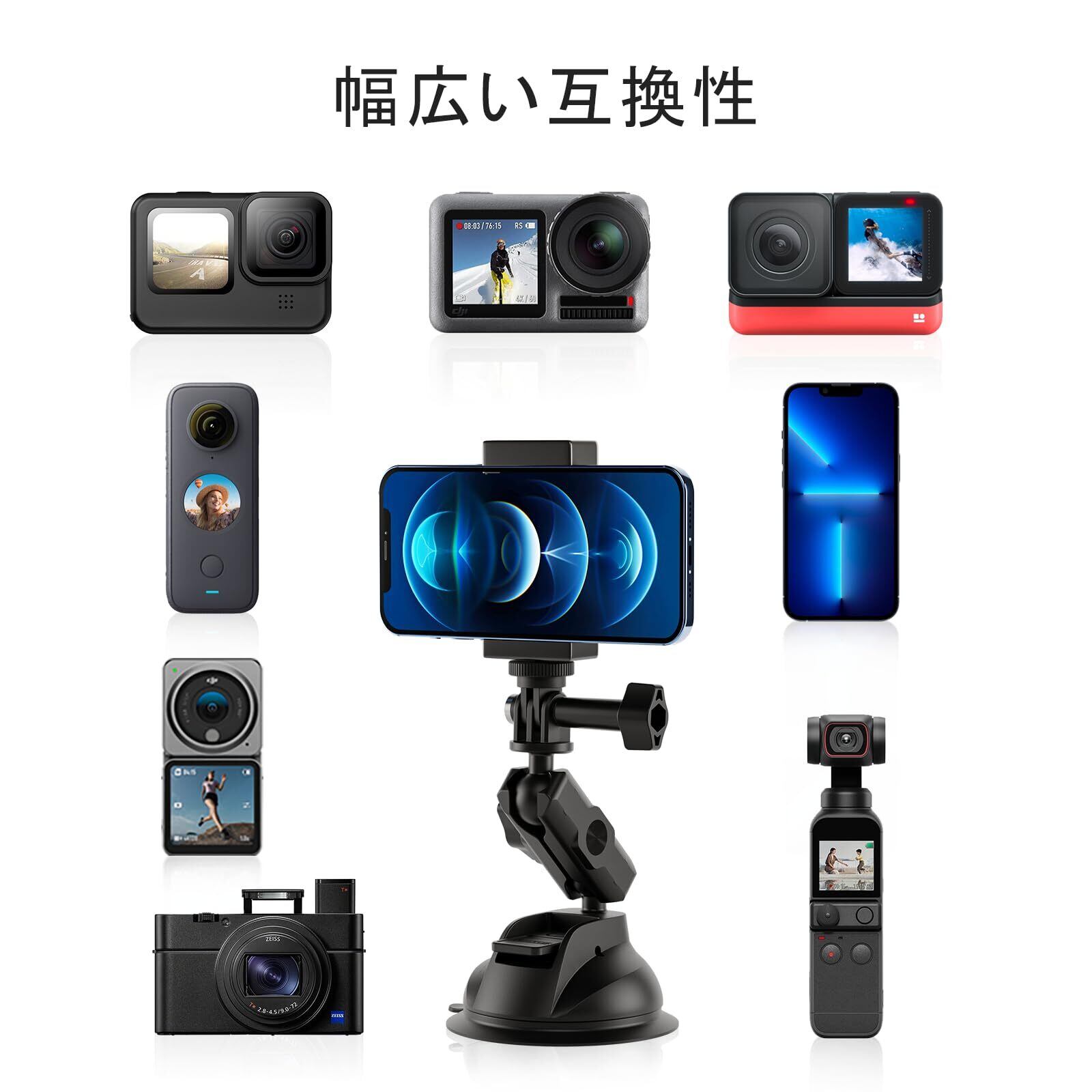 互換性:本品はGoPro Max Hero 13 12 11 10 9 8 7 6 5 Insta360 One X2 X3 Go 2 DJI Osmo Pocket 2 Action 2 Action 3 IPhone Samsungに対応します。市場のほとんどのアクションカメラと互換性があり、スマホホルダーが付いているので、ほとんどのスマホと互換性があります。