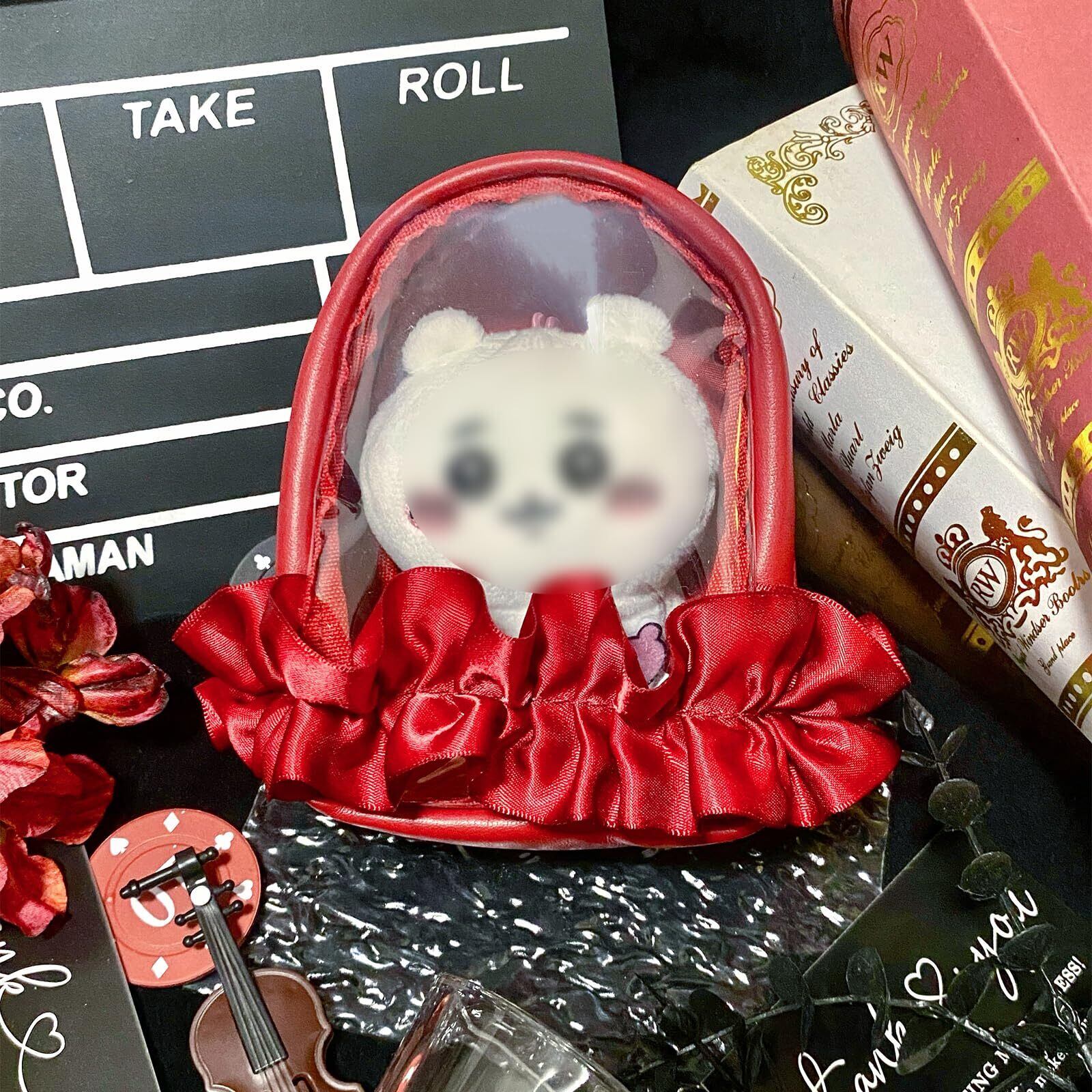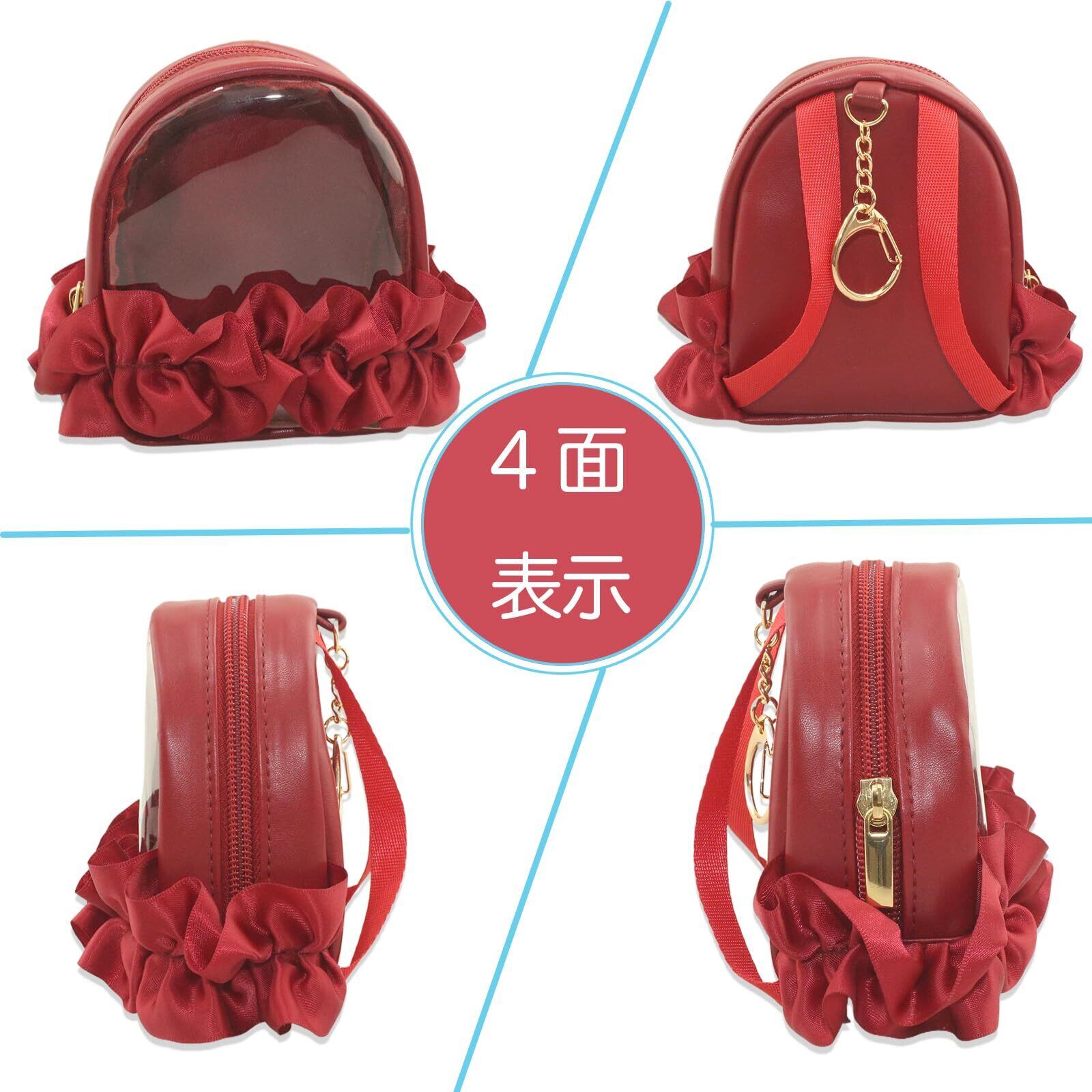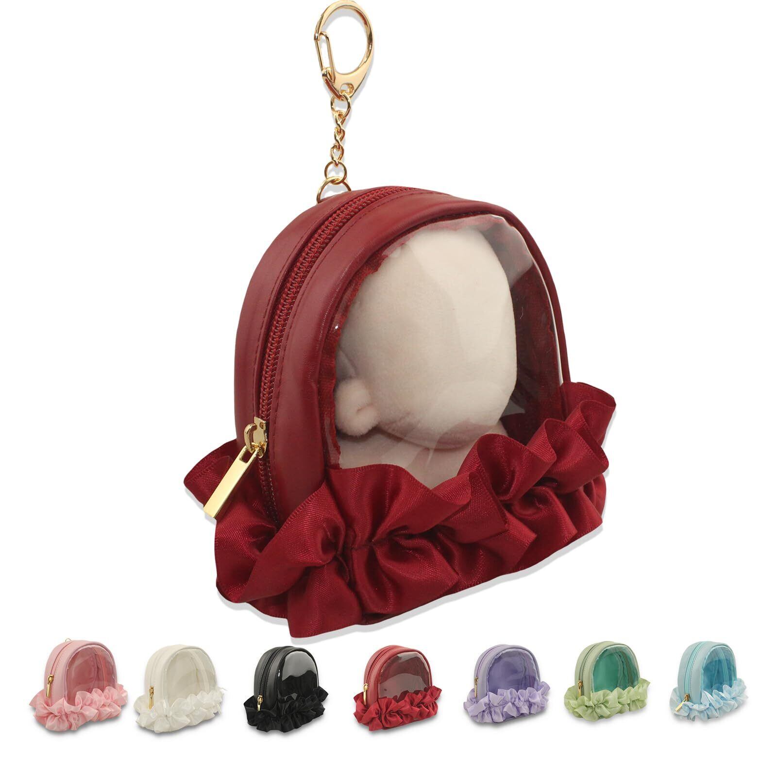 YOKUMA ぬいぐるみ 収納 ぬいぐるみポーチ ぬいポーチ 推し活 ポーチ 推し活バッグ 推し活グッズ 痛バ ミニ 人形入れ 痛バッグ 小さめ クリアポーチ 透明ポーチ クリアバッグ 持ち運び (レッド)