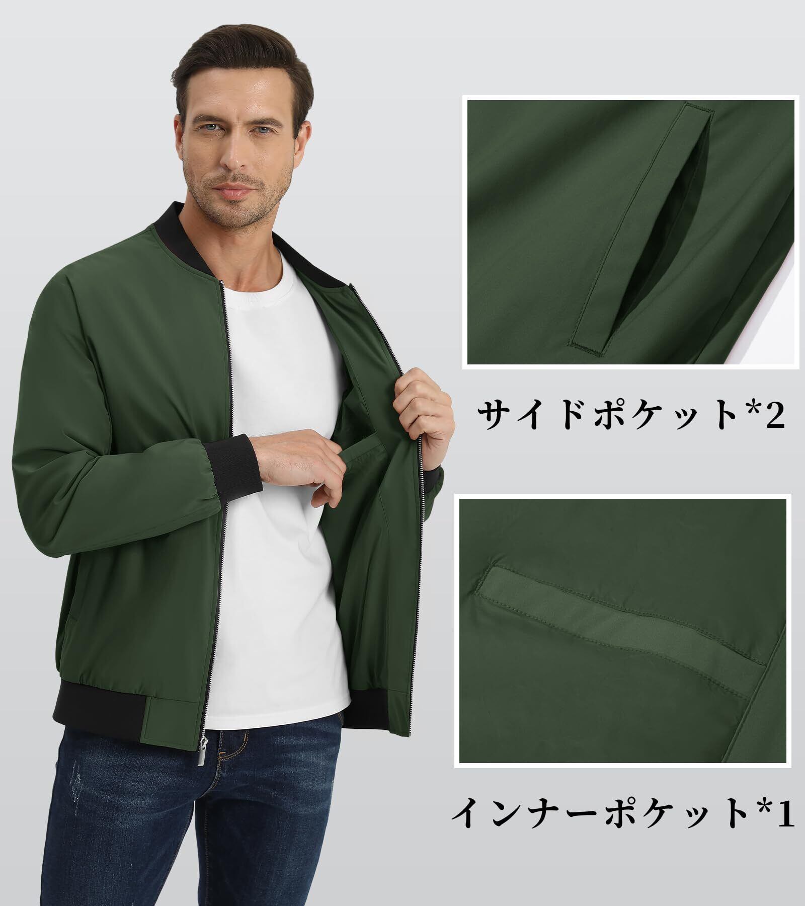 【新着商品】[KEFITEVD] ジャケット メンズ スタジャン 薄手 ウィンドブレーカー 撥水 防風 ライトジャケット 大きいサイズ スカジャン ポケット付き 作業着 ミリタリー ブルゾン カジュアル 秋服
