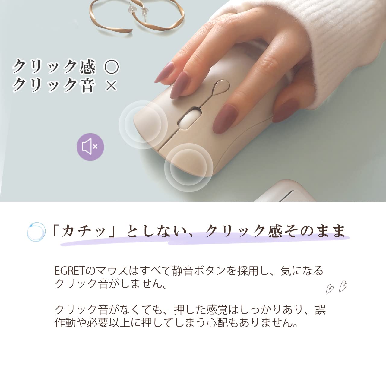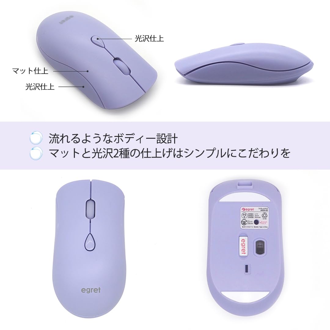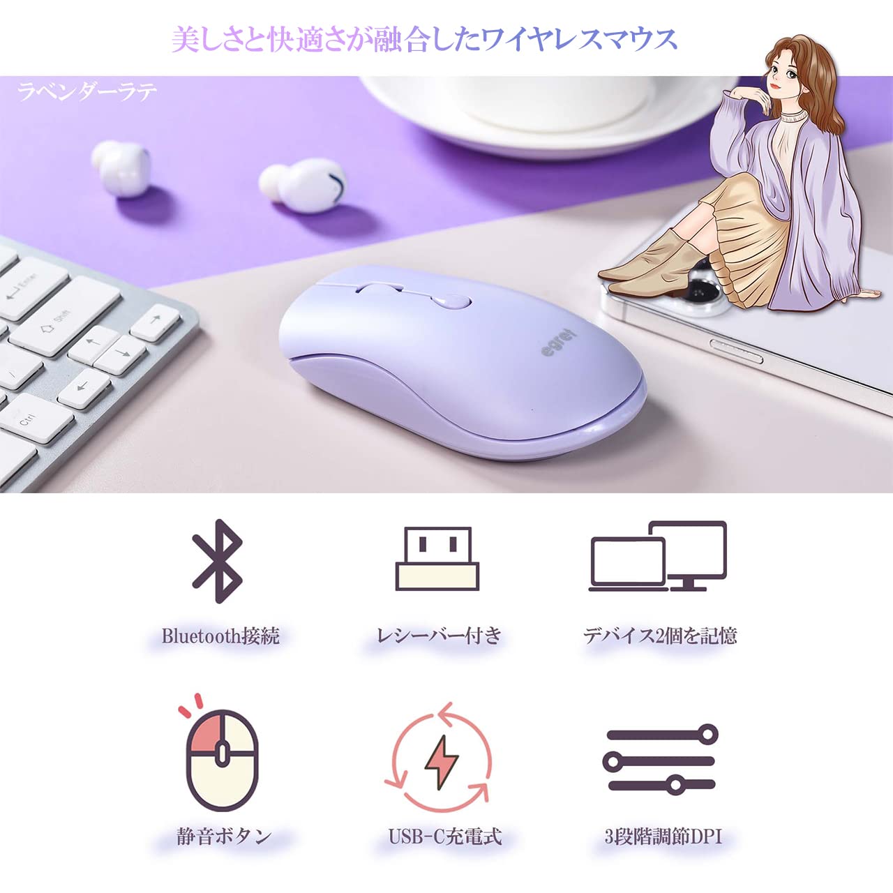 Bluetooth&2.4G、充電式静音ワイヤレスマウス、2台PC対応、3段DPI、かわいい、おしゃれ、パープル、軽量、 EGRET SweetiE (ラベンダーラテ) EM23-S1