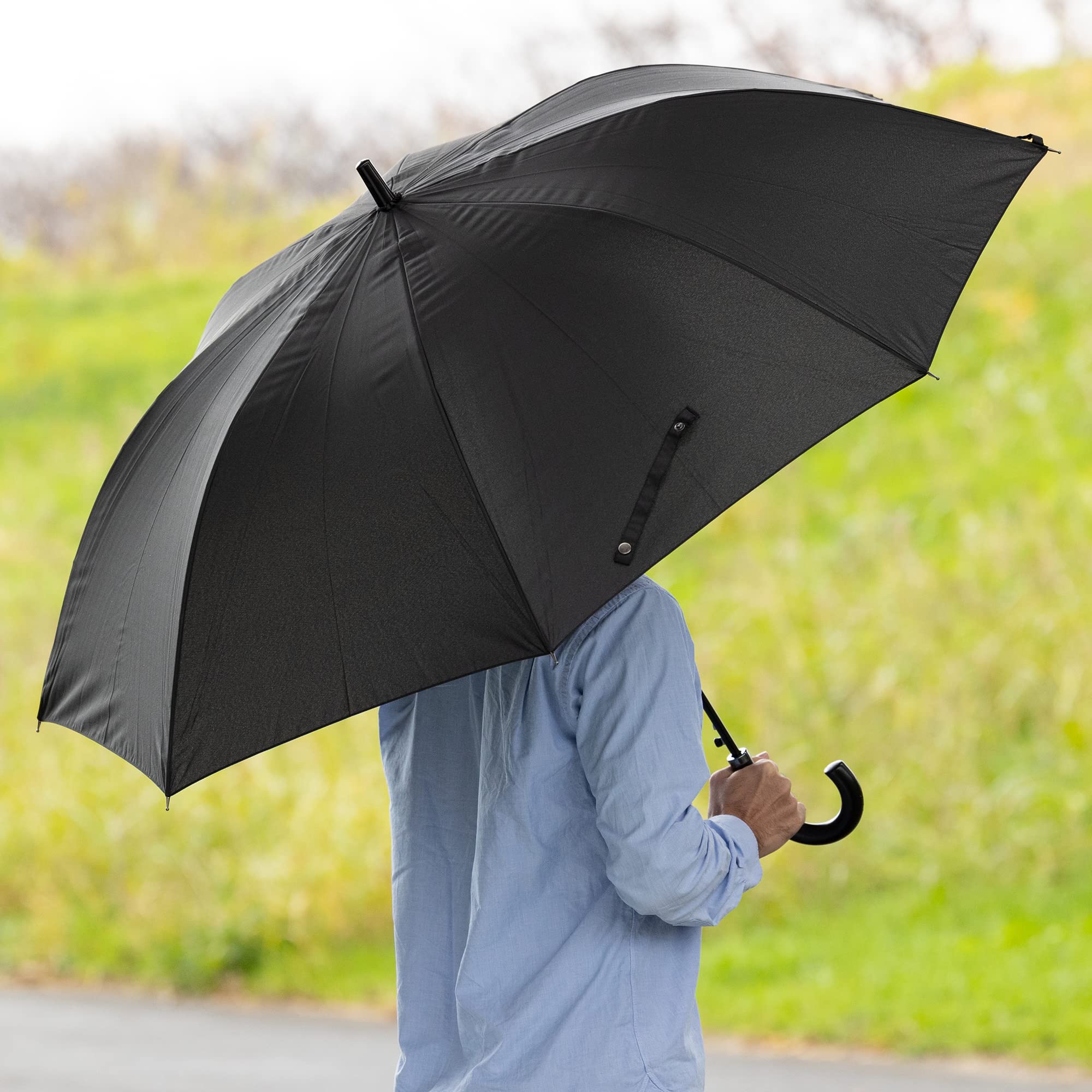 アンビープラス(Umbe+) 紳士 無地 ジャンプ傘 70cm×8R ブラック HM2270MBB