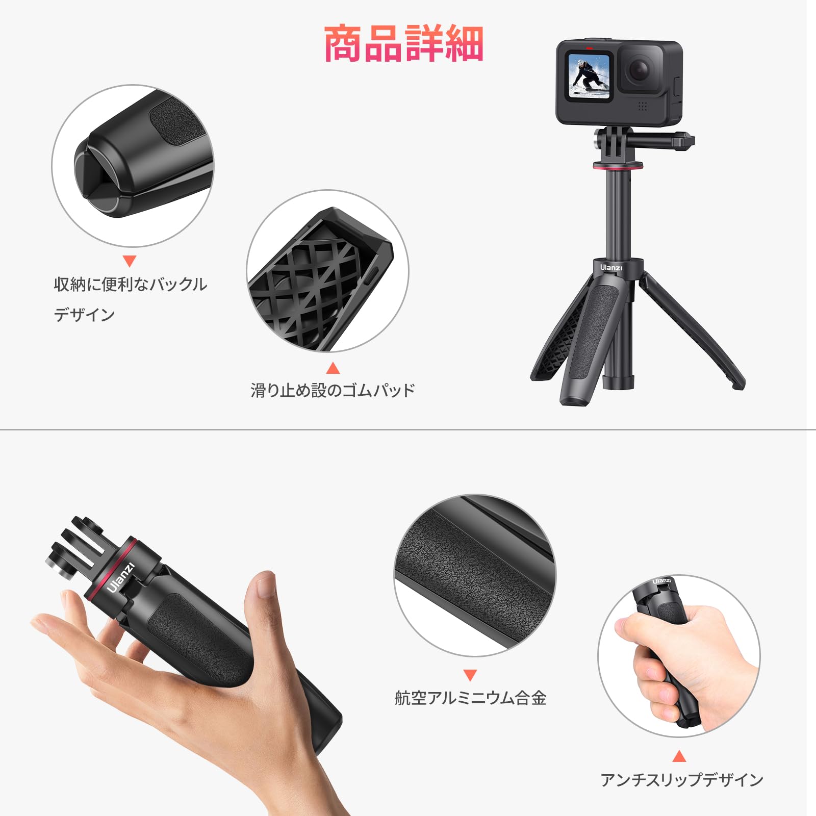 Ulanzi 自撮り棒 GoPro用 セルカ棒 3段伸縮 3way自撮り棒 伸縮一脚 三脚 ゴープロ用 DJI OSMO ACTION/OSMO POCKET用 アクションカメラ vlog アクセサリー