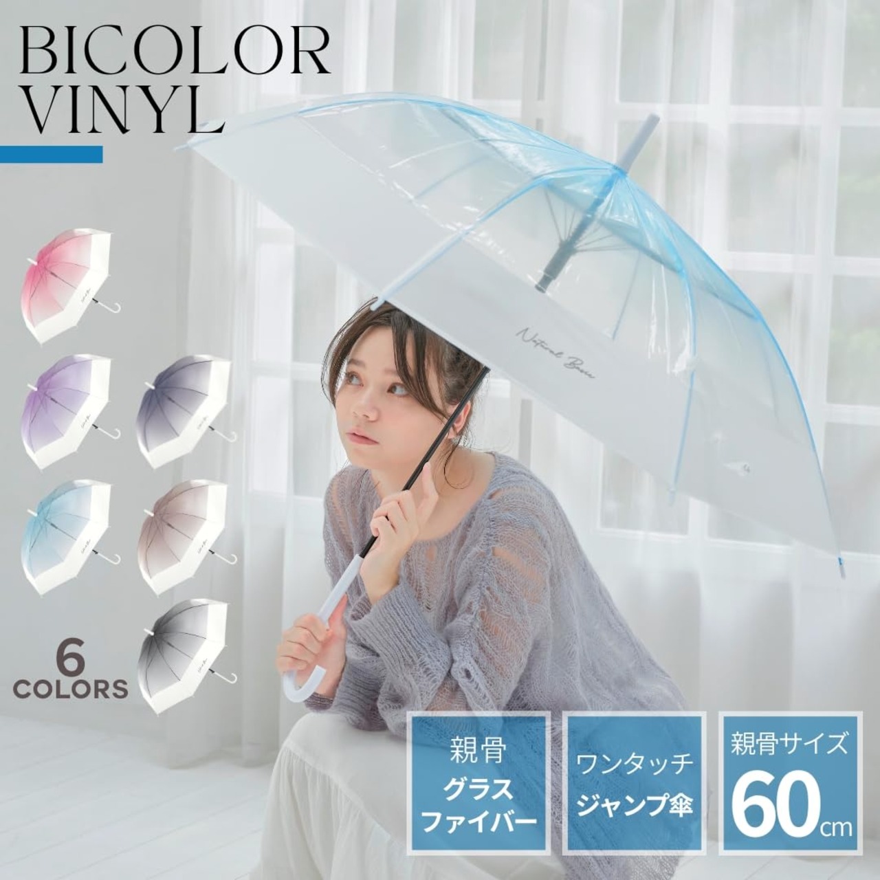 グラデーション&バイカラーがおしゃれなビニール傘です。