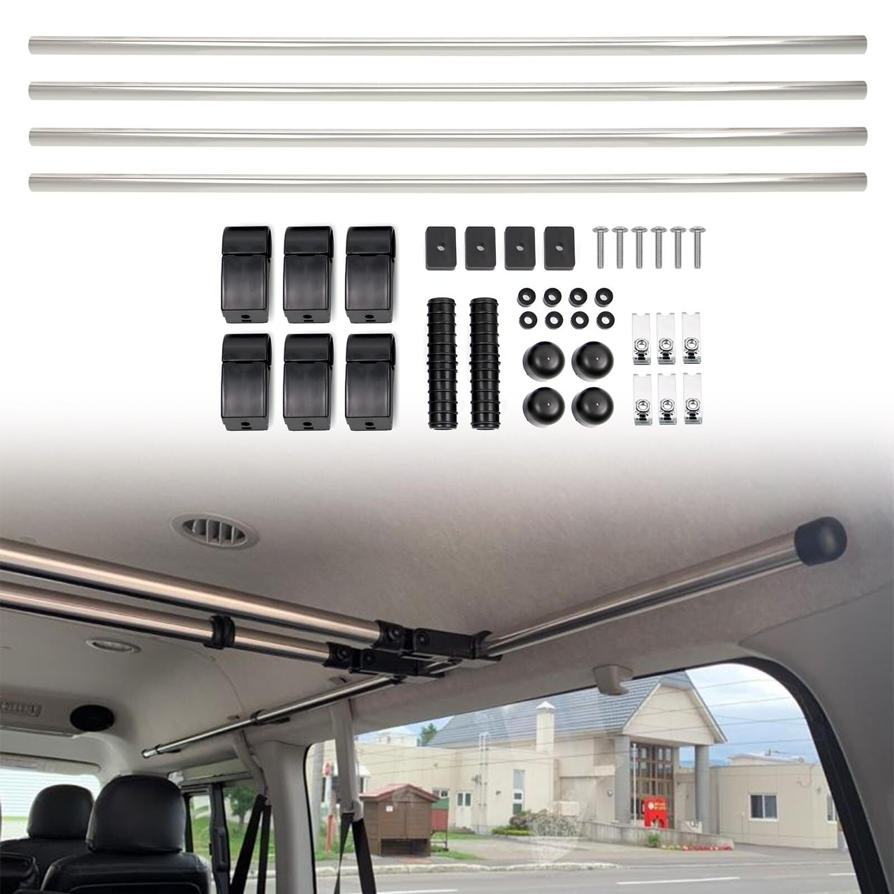 【商品のサイズ】ハイエースやNV350キャラバンに最適な220cmサイズ(1本あたりの最大積載量:10kg)