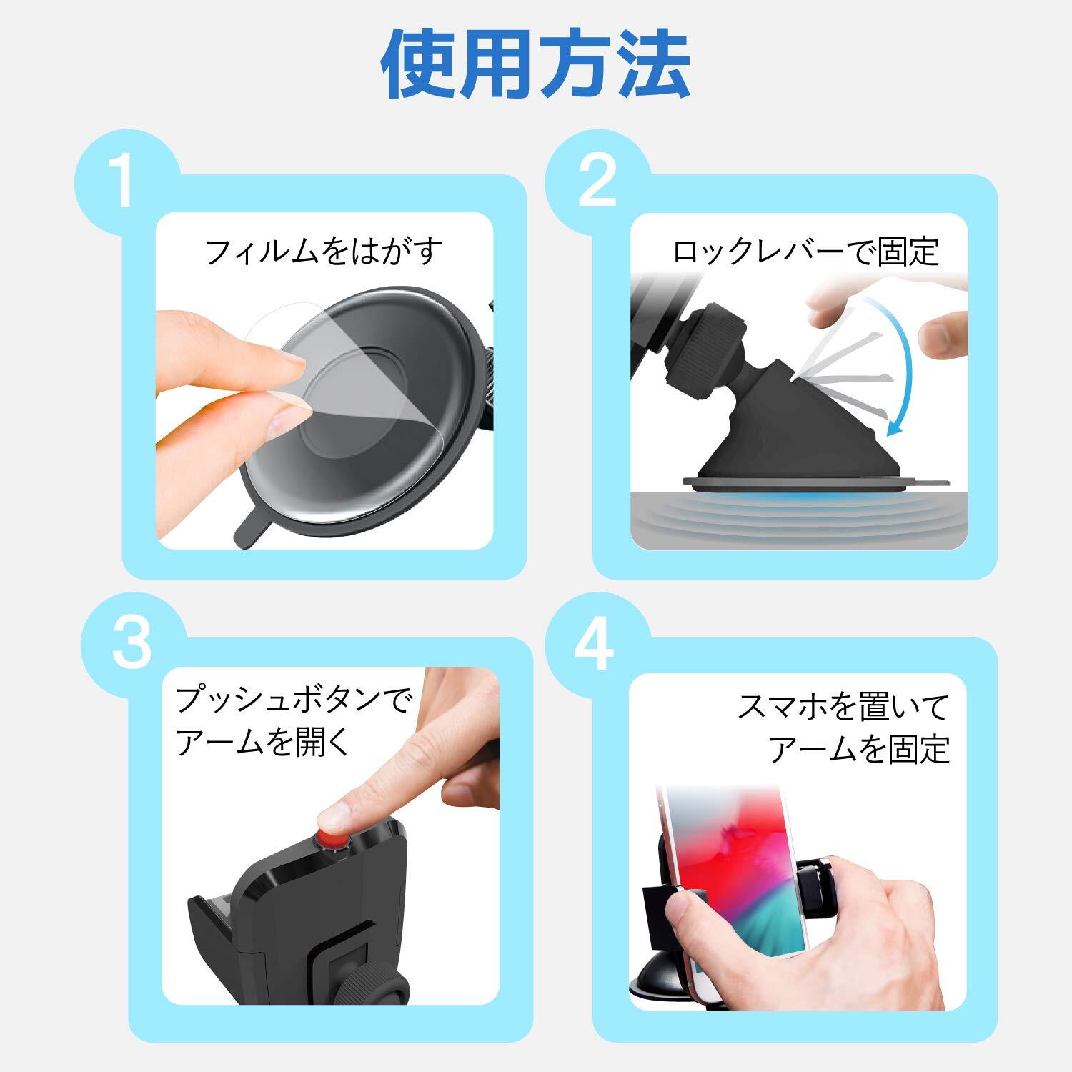 ■スマートフォンを車内に設置できる、ゲル吸盤タイプの車載ホルダーです。 ■ゲル吸盤を採用し、車のダッシュボードにしっかりと固定可能です。 繰り返し貼り替えることもできます。 ■横幅45mm~90mmまでのスマートフォンを設置可能です。 ■前後に可動するホールドアームを採用し、手帳型ケースをつけたスマートフォンなど様々な厚みに対応できます。 ■ワンタッチでスマートフォンの取り外しができる、ワンプッシュボタンを搭載しています。 ■ボールジョイントを採用していますので、360度回転や自由な角度に調整し、固定することができます。 ■スマートフォン設置部分に、本体を傷つけにくいラバー素材を使用しています。 ■スマートフォンをしっかり支えられるフットパーツは収納可能です。 ■シボが深めのダッシュボードへの吸盤設置を補助する吸盤補助板がついています。