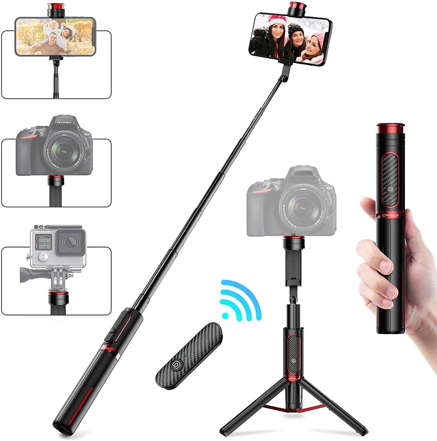 CAFELE 自撮り棒ミニ三脚セルカ棒Bluetoothリモコン操作三脚/一脚兼用コンパクト 軽量ワイヤレス無線 回転可能7段伸縮80cm折り畳め式持ち運び便利iPhone/Android/Gopro対応 ブラック