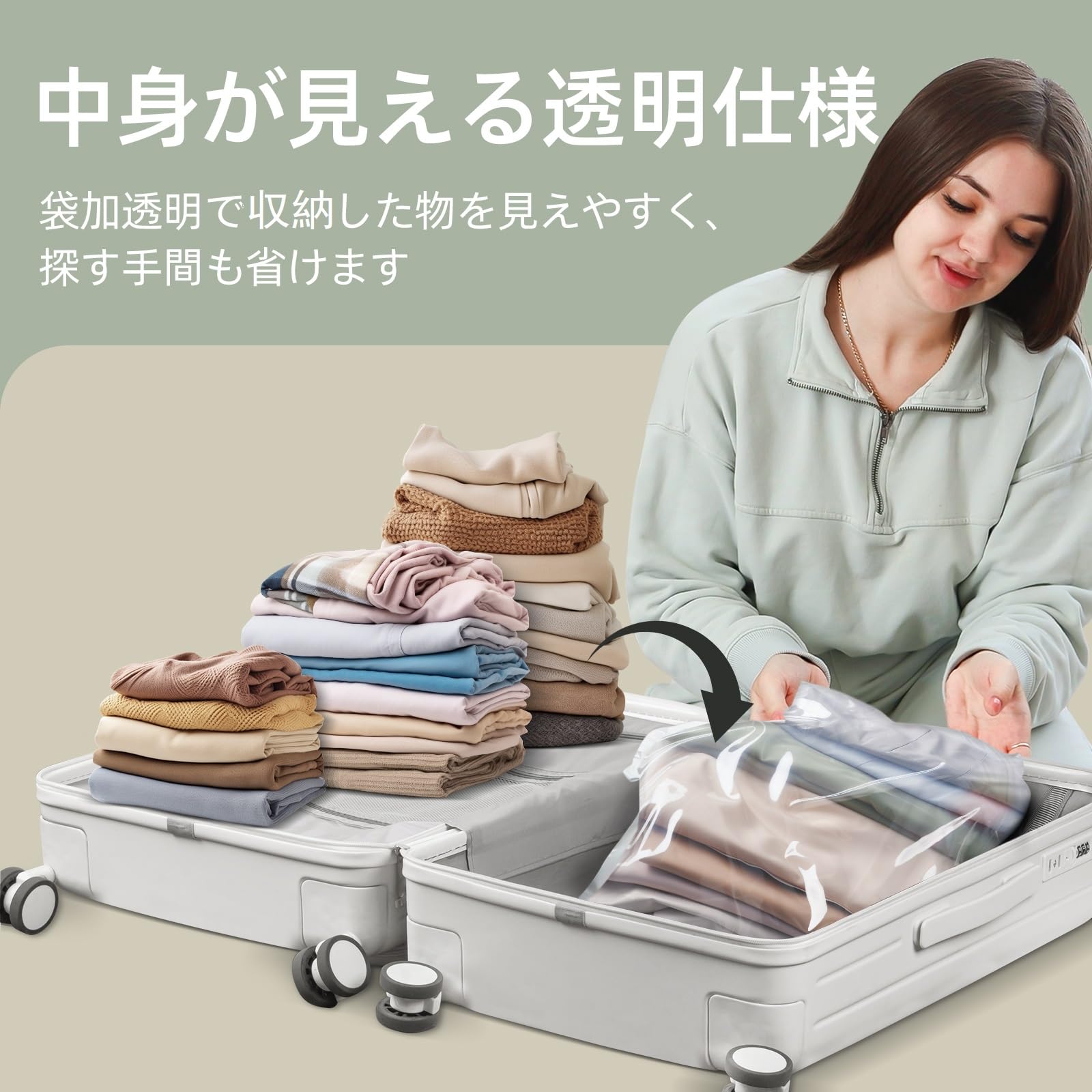 【使用便利】片面は透明になっているので中が見え、入っているものもすぐに分かります。衣類圧縮袋は片面が透明なので、中身を簡単に確認でき、複数のバッグを開けることなく、探しているものを見つけることができます、出張や旅行などの時のはとても便利です。収納/引越し/衣替え/出張/旅行も通用できます。