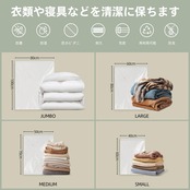 【高密封 高耐久】真空収納袋はダブルバックルで密封されており、1年間内に空気が漏れないことをします。チャック部分は空気が漏れない二重チャック構造になっています。また、ダニやカビなどの侵入を防ぎ、常に清潔に保管して頂けます。そして、我々の素材がPAとPEの高品質ブレンドから作られています、同じ製品の厚さより30%厚くでき、丈夫で柔らかく、健康的な素材です