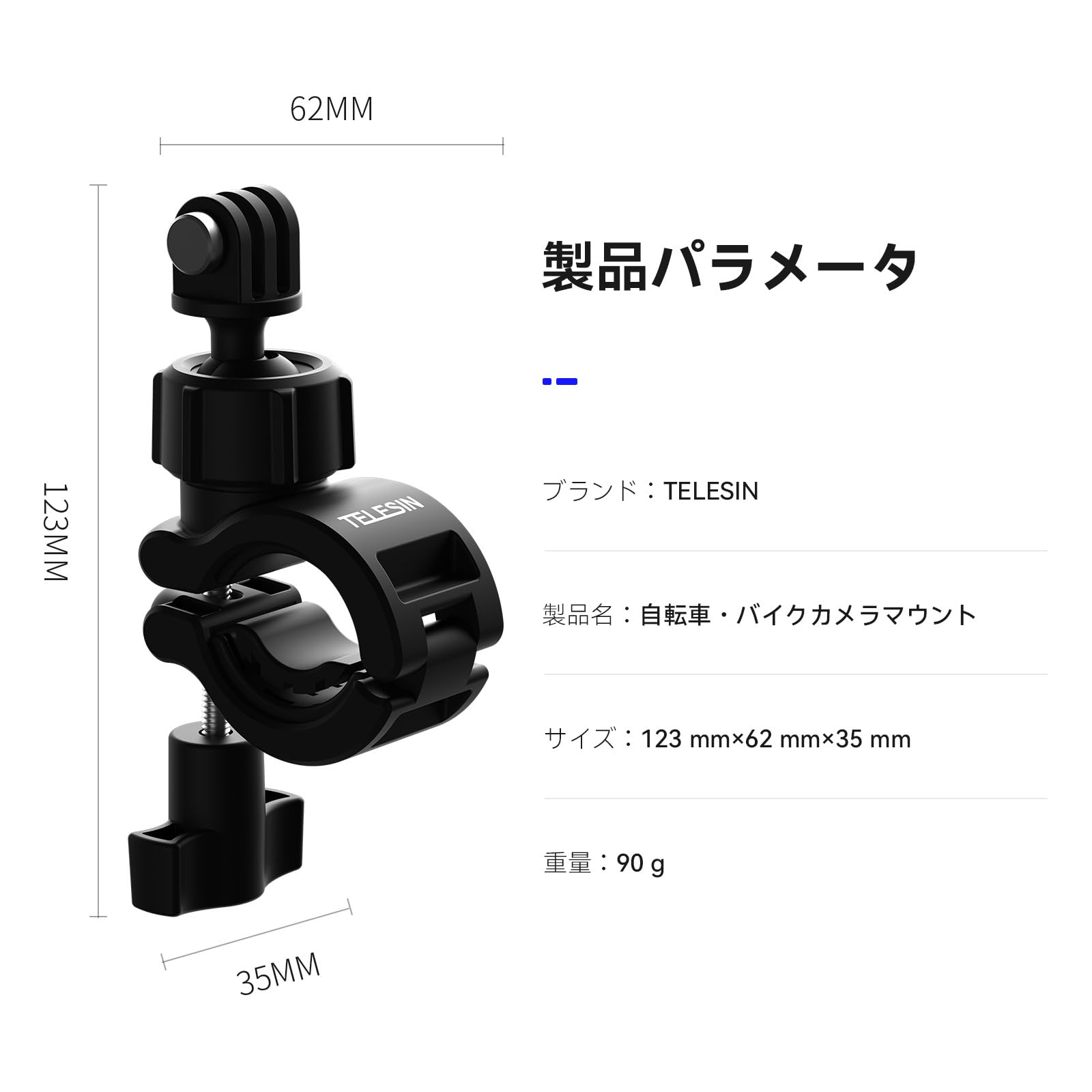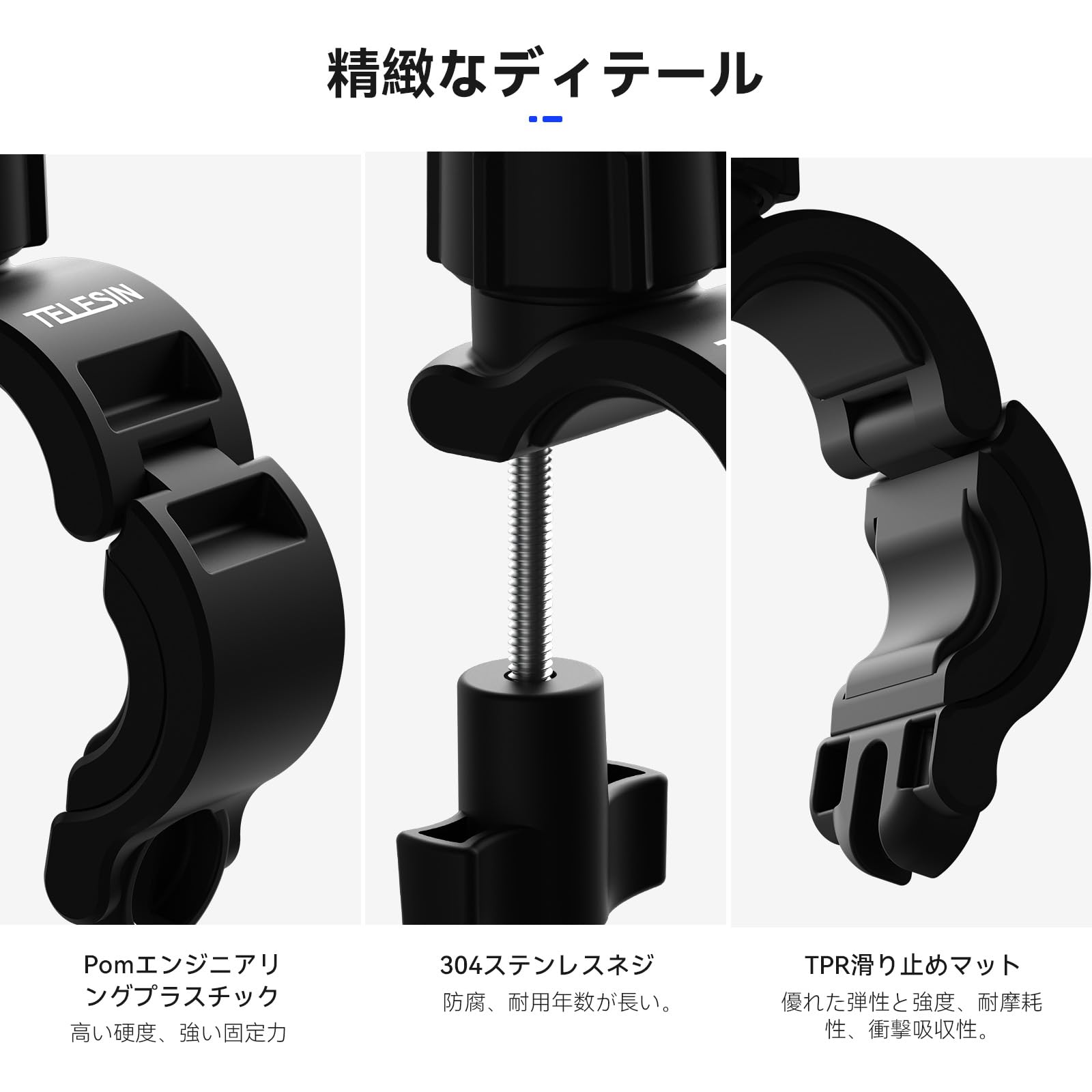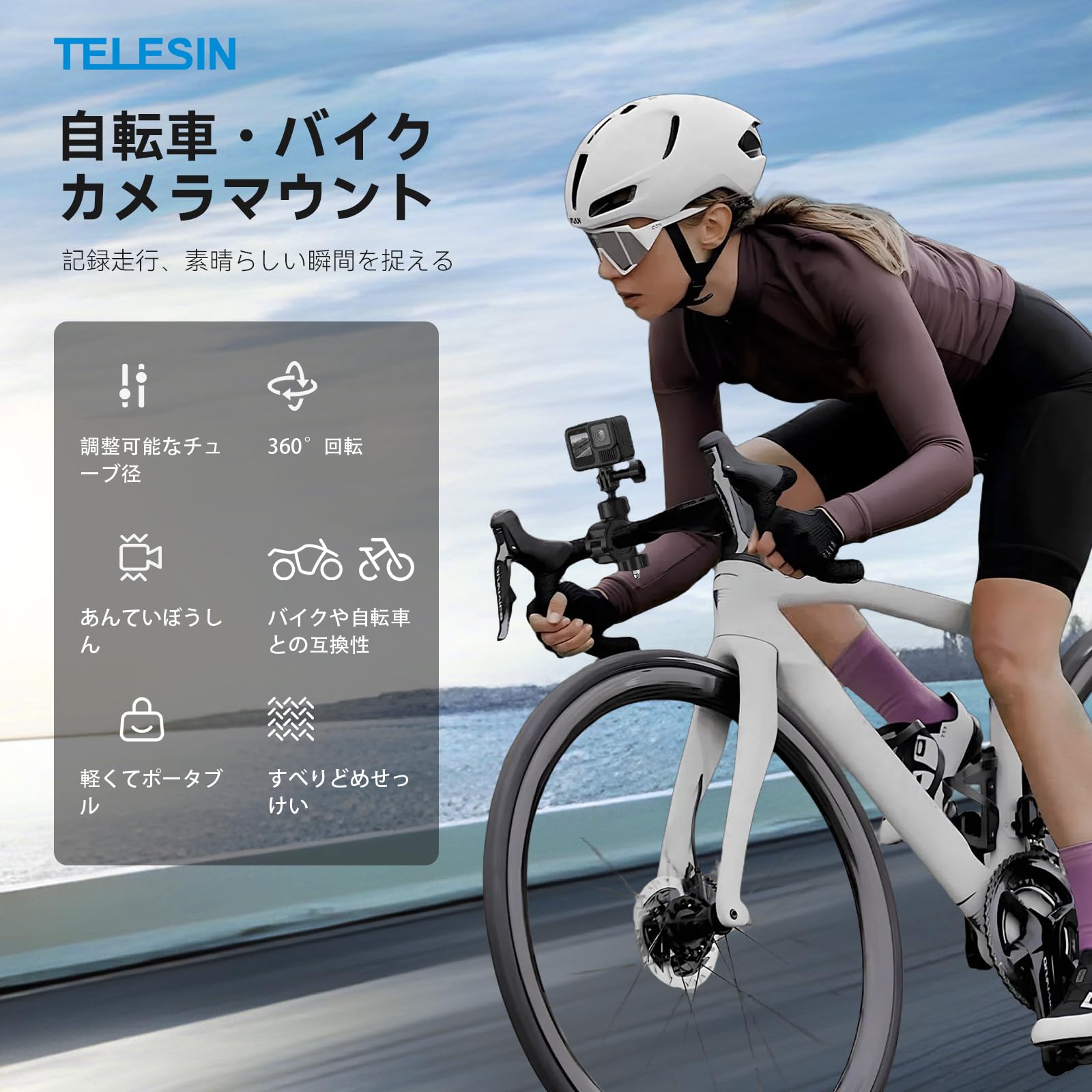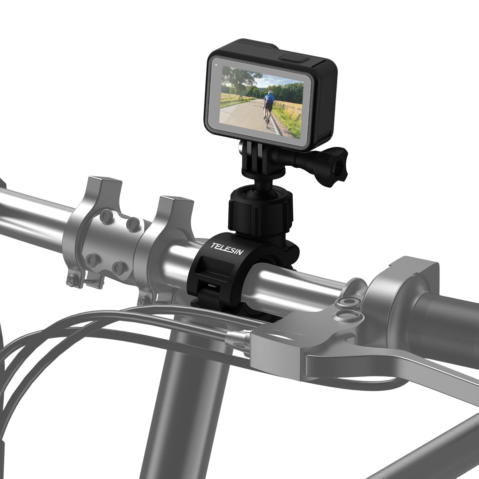 TELESIN バイクマウント オートバイのハンドルバーマウント 自転車ホルダークリップ アクションカメラリグ 360°回転スーパークランプ GoPro Hero 13 12 11 10 9 Black AKASO Insta360 X5 X4 X3 One RS X2 Ace Pro Go2 DJI Action Osmo 5 Pro 4 3 Pocket 3に対応 20mm-32mm