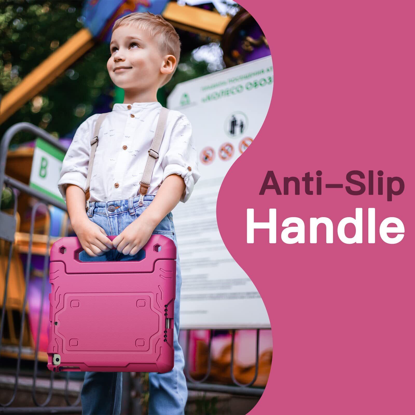 JEDirect 子供用 iPad 9.7インチ ケース (第6/5世代、2018/2017モデル) 液晶保護フィルム付き 耐衝撃 フルボディハンドルスタンド タブレット保護カバー (ローズ)