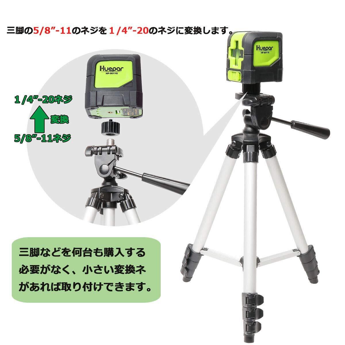 Huepar メネジ5/8"-11 変換 オネジ1/4"-20 ネジ径変換アダプター 固定ネジアダプター 三脚 レーザー 墨出し器 水準器アダプター 適用 変換アダプタ― アルミ合金製【5/8"-11→1/4"-20】