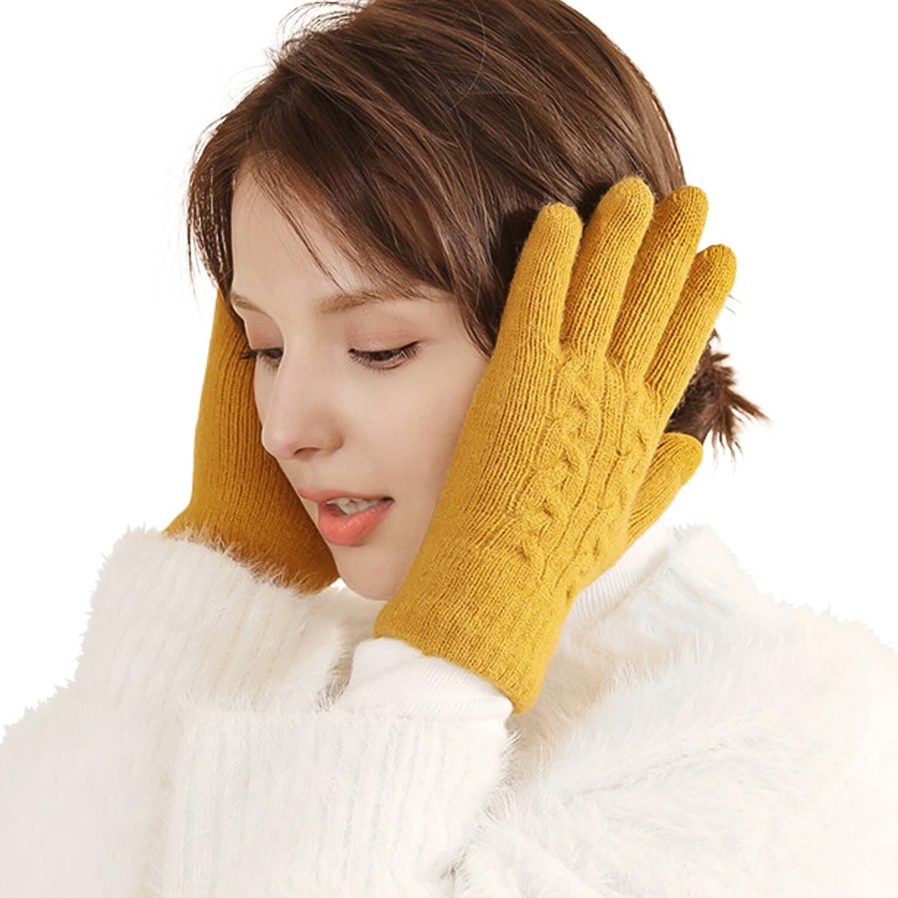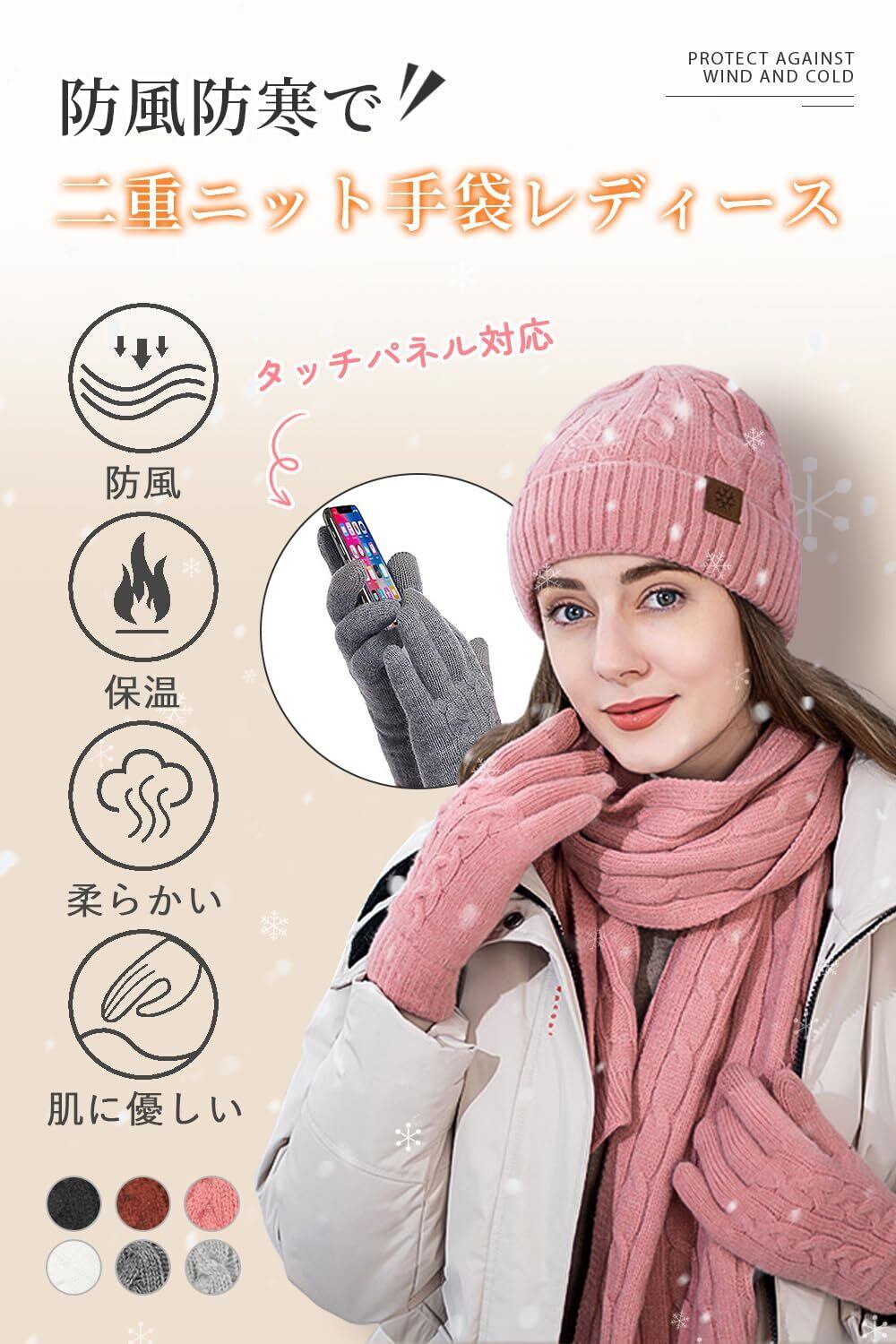 [Pawinpaw] 手袋 レディース 冬 防寒 暖かい【スマホ対応/ふわふわ裏起毛/厚手/柔らかい】スマホ手袋 ニット手袋 かわいい 無地 防寒グローブ てぶくろ おしゃれ 通勤 自転車 バイク キャンプ 誕生日&クリスマスプレゼント 女性用