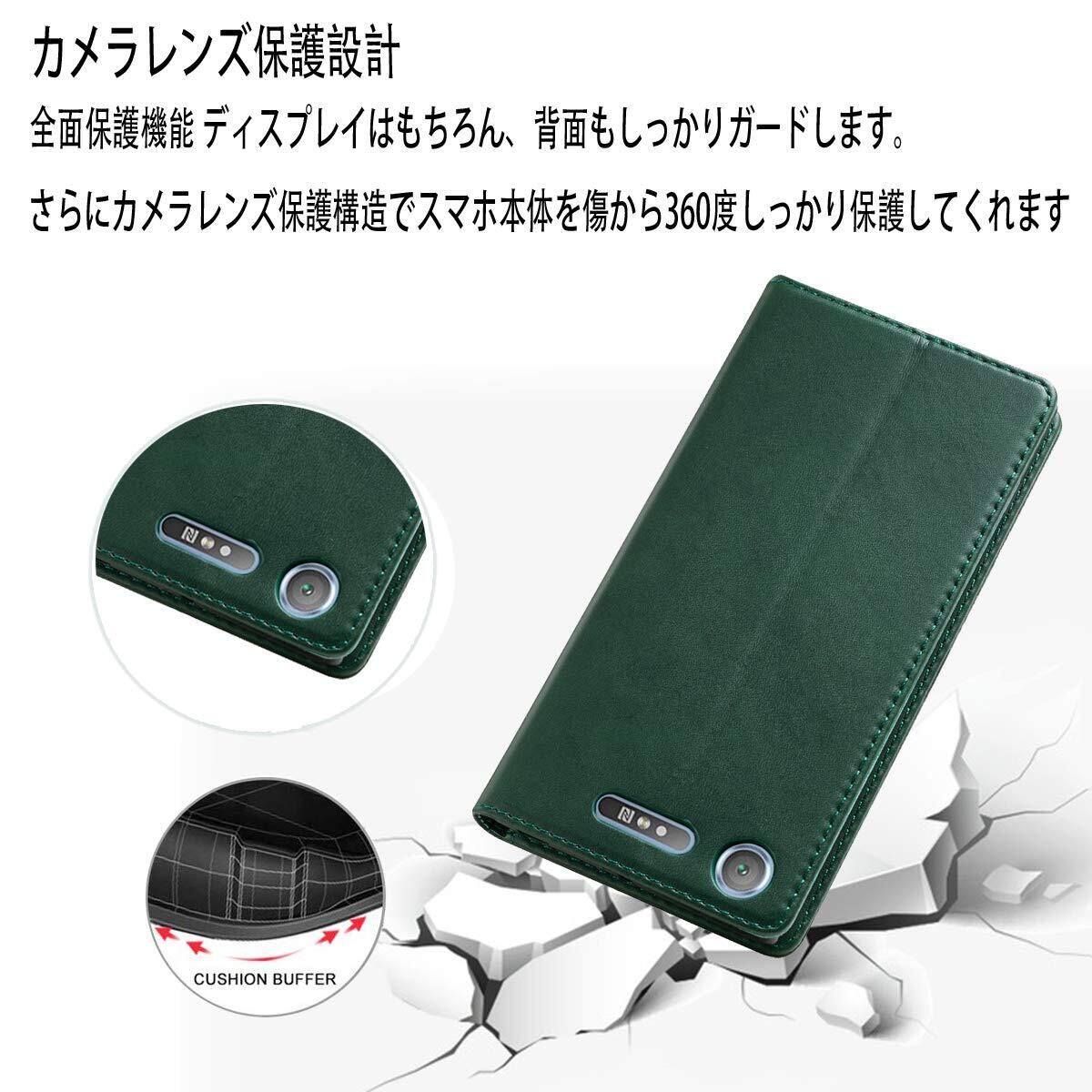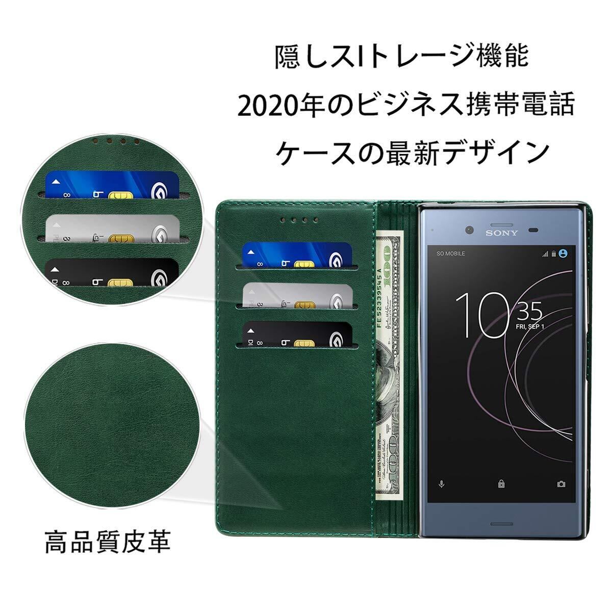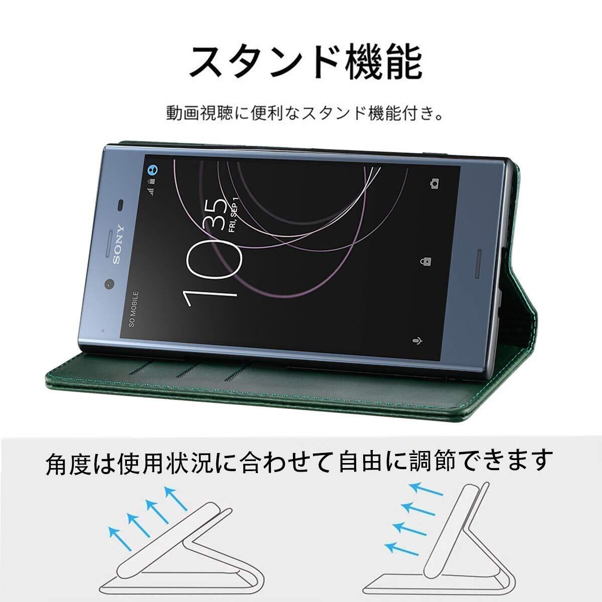 Xperia XZ1 ケース 手帳型 高質PUレザー SO-01K SOV36 ケース Sony SOL23 カバー 耐衝撃 皮革 内蔵マグネット開閉式 ベルトなし スマホケース おしゃれ カードポケット スタンド機能 便利 スプラット同梱 携帯カバー(グリーン)