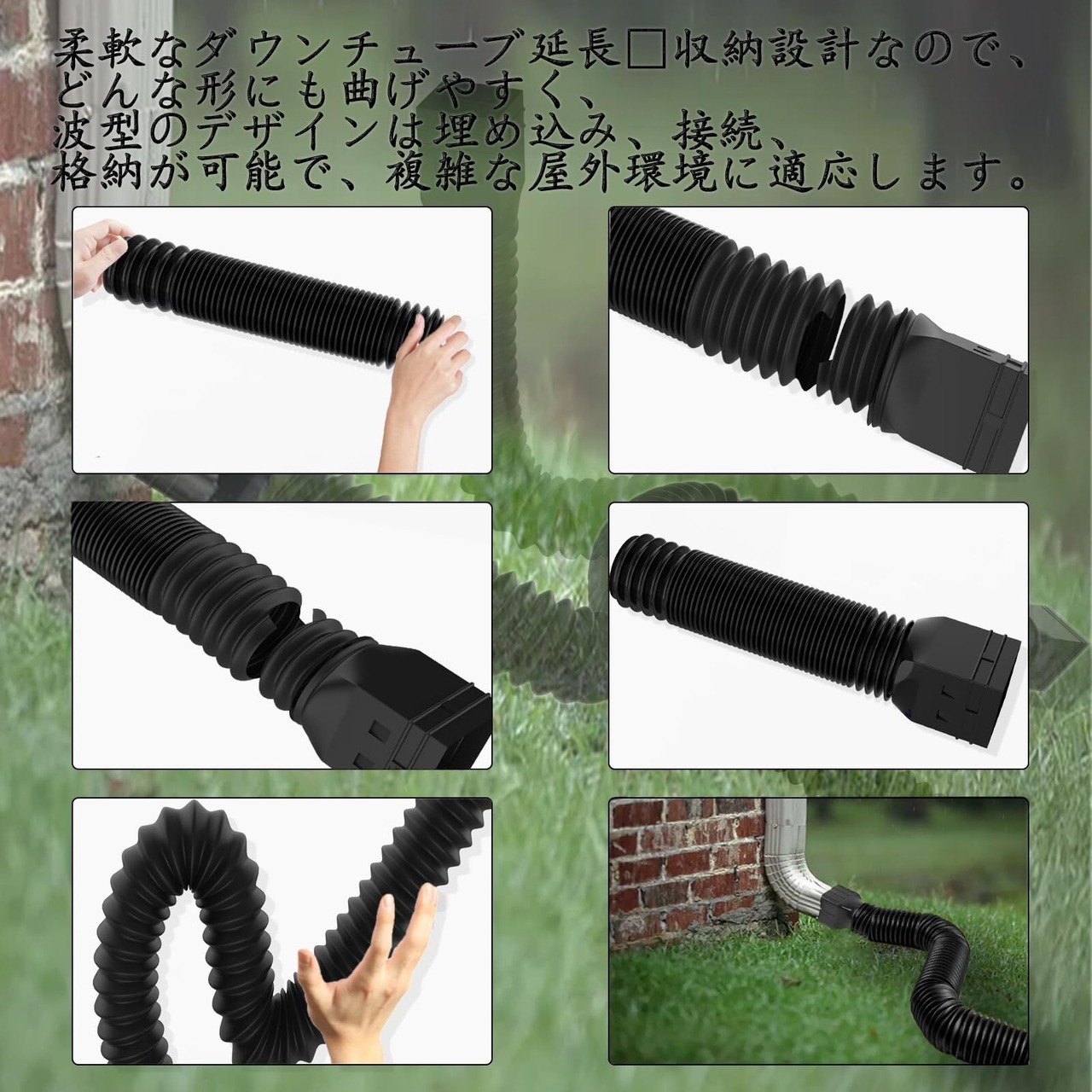 フレキシブル : フレキシブルなダウンパイプ延長収納式デザインなので、どんな形状にも曲げやすく、波型デザインは、埋設、接続、曲げ伸ばしができ、屋外の複雑な環境に合わせることができます