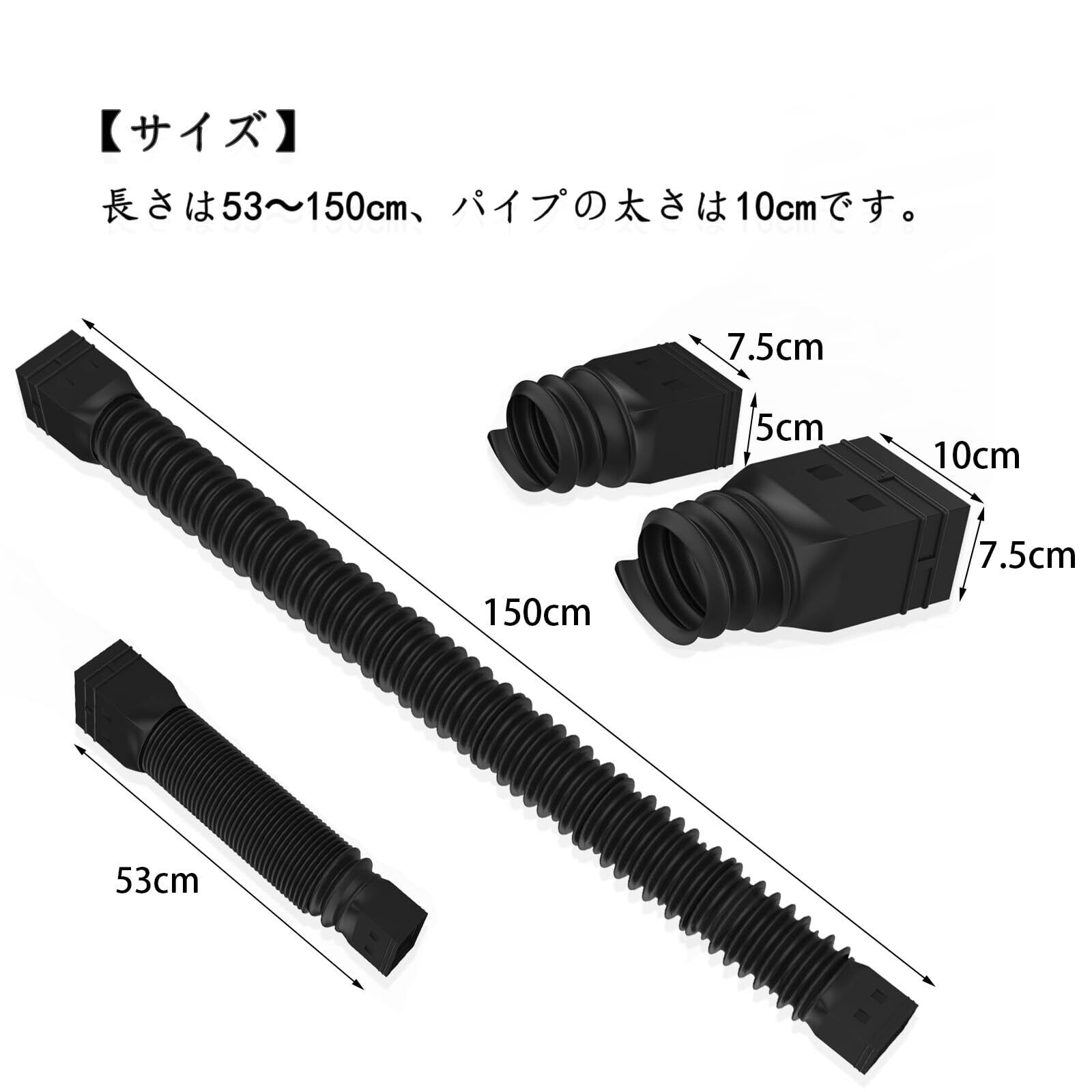 雨樋延長ホース 雨樋部品雨どい 雨水排水管 蛇腹 伸縮53CM-150CM延長可能 水道管 延長 ダウンスパウト カーポート 屋根 排水パイプ ブラック(ブラック)