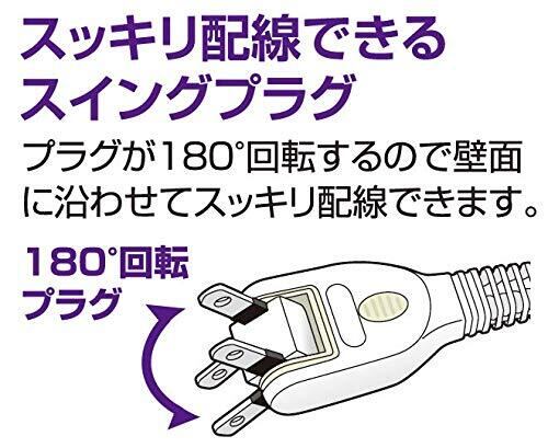 【スイングプラグでスッキリ配線】差し込み口の向きを調整できるので、大きなACアダプターも邪魔にならずお使いいただくことができますさらにタップ側のコード付け根もスイングします。