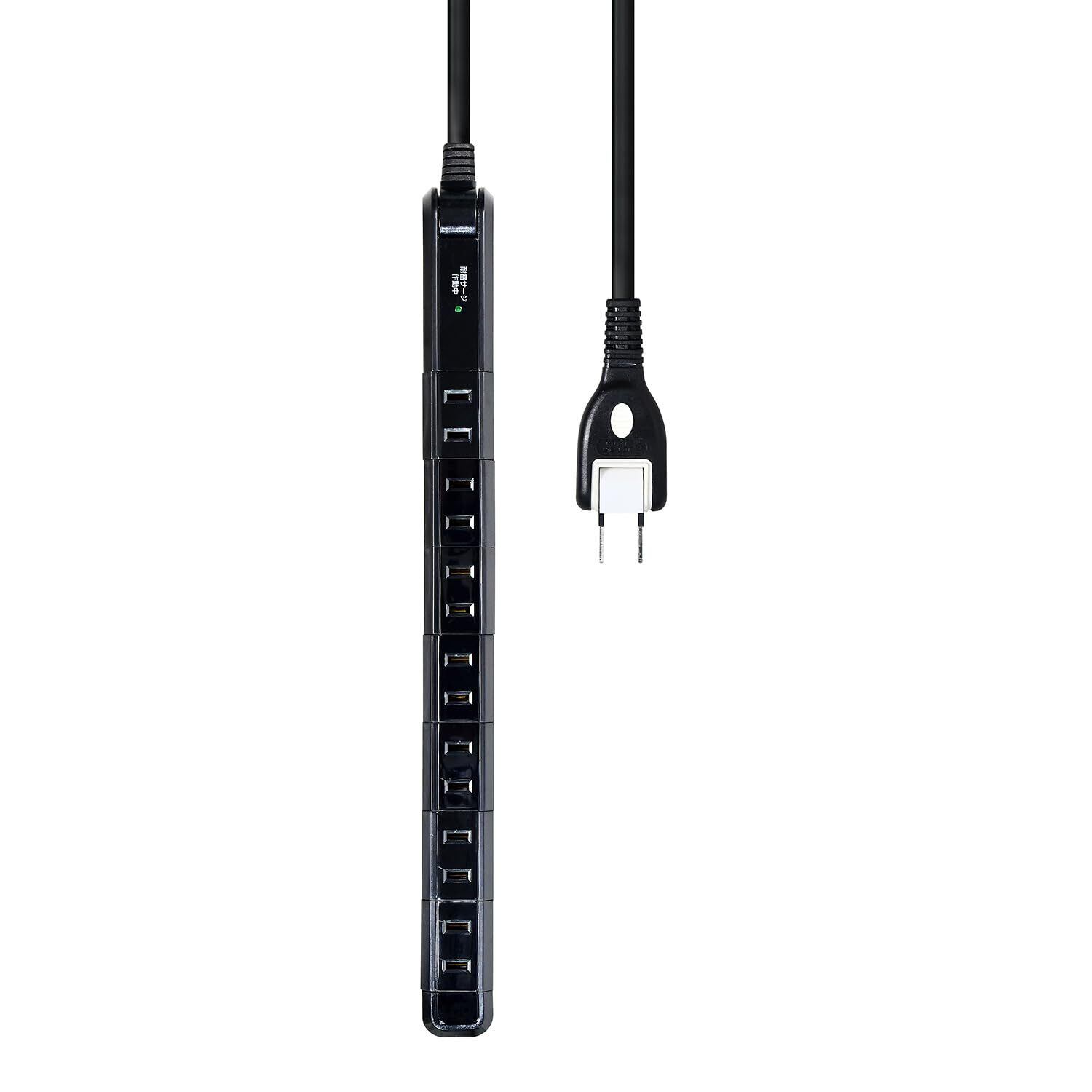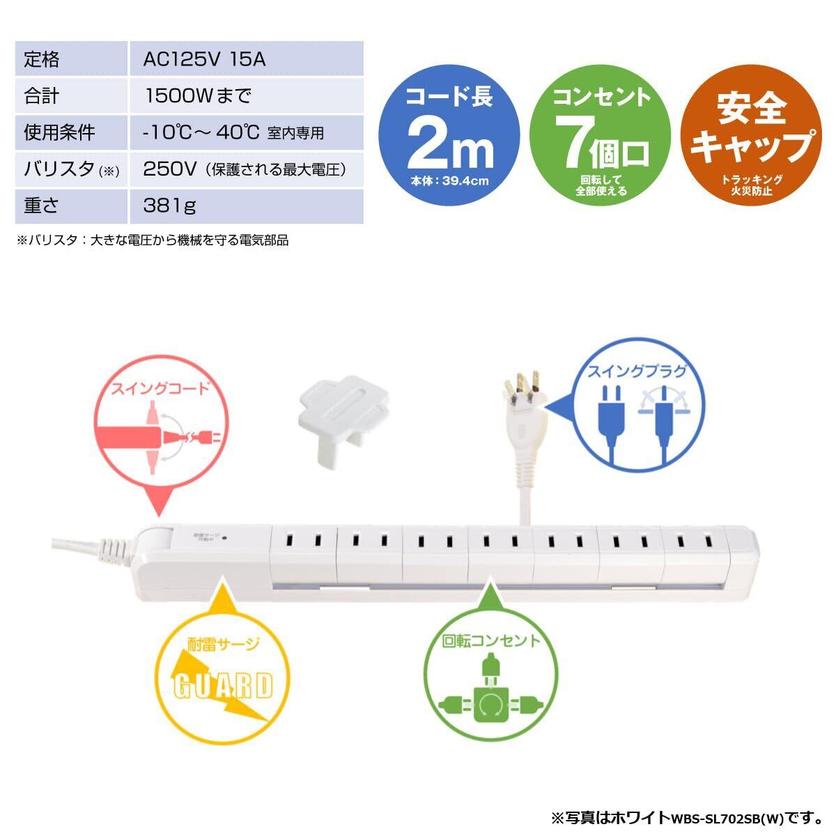 エルパ (ELPA) スリムタップ 雷ガード 延長コード 7個口 2m 回転 耐雷 WBS-SL702SB(BK)