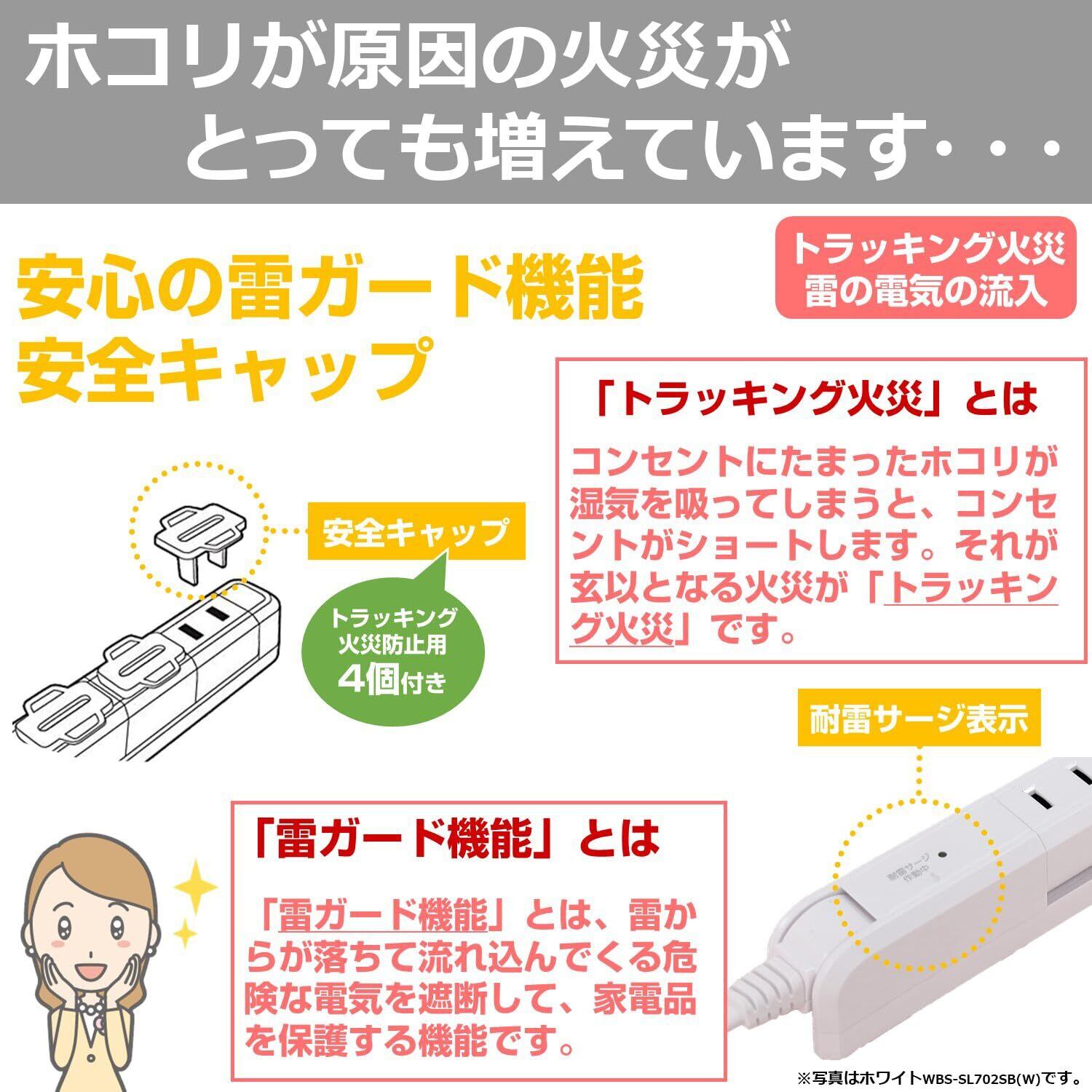 【便利な機能】雷サージ電流を防ぐ、雷ガード機能付きです。ホコリ防止カバーでトラッキング火災を予防し、プラグにもトラッキング防止被覆付きです。