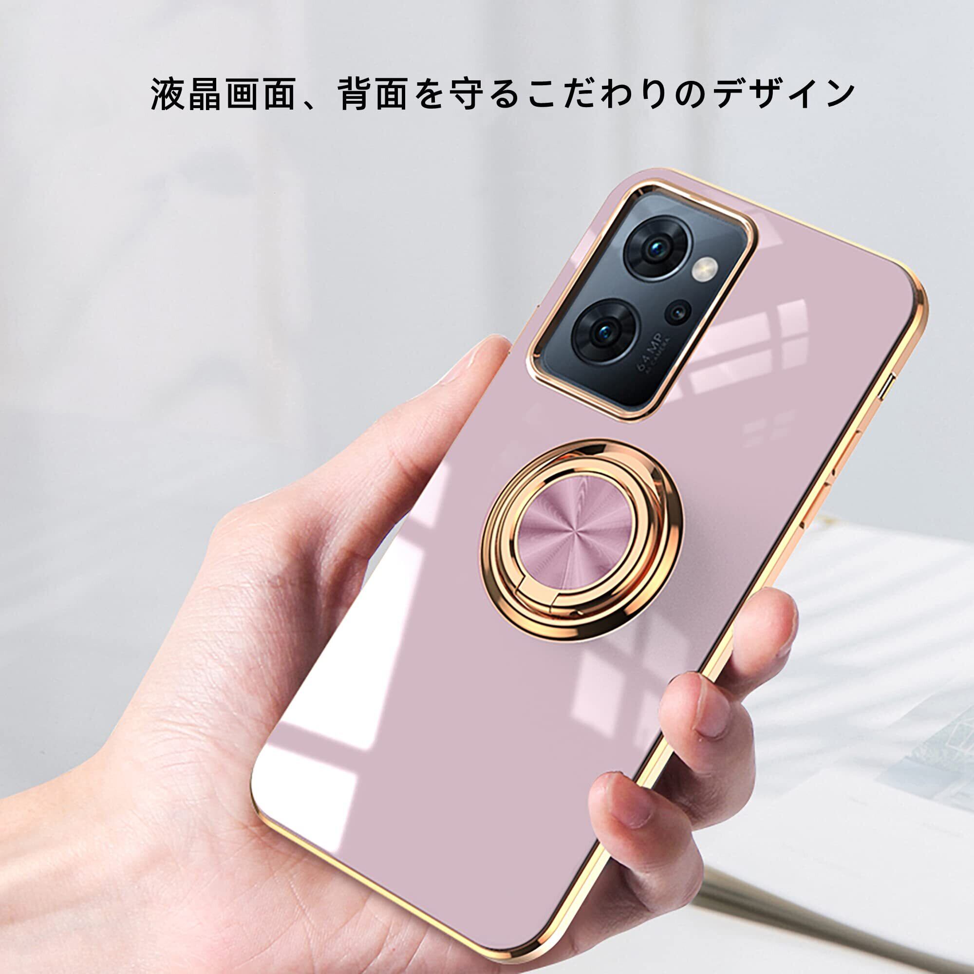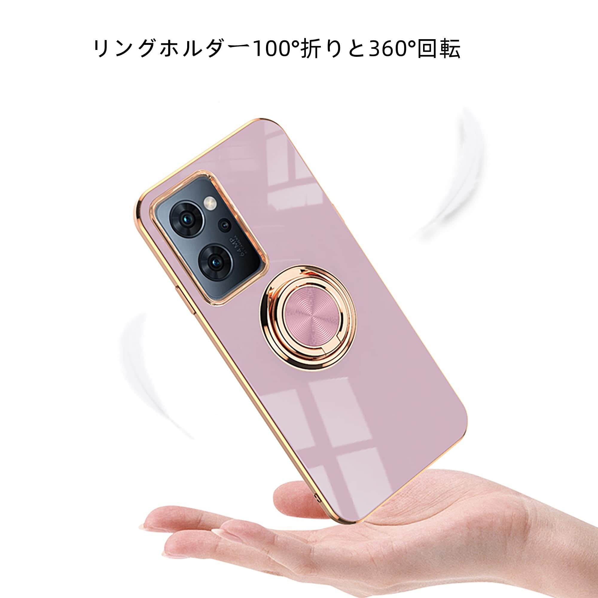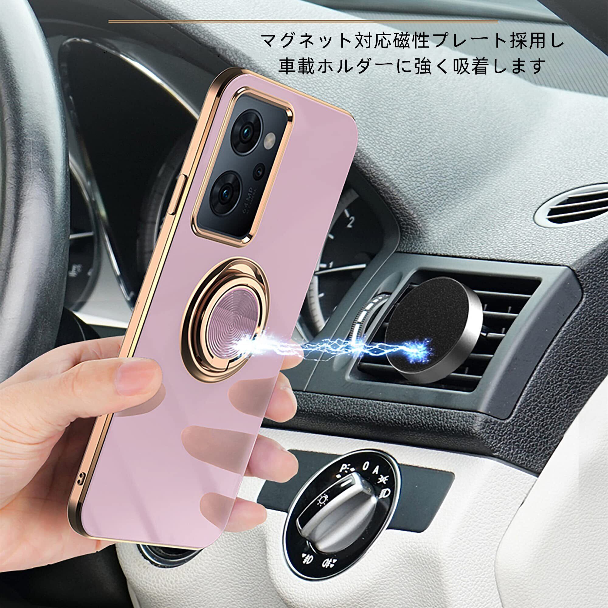 【Yikasina】OPPO Reno7 A ケース リング付き おしゃれ スマホケース オッポ リノ7 a ケース au OPG04 かわいい 人気 車載ホルダー スタンド機能 シンプル (OPPO Reno7 A, パープル)