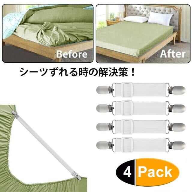 【特価セール】LIHAO ベッドシーツクリップ ズレ防止 クリップ 布団クリップ 調節可能 シーツ 布団 滑り止め シーツ固定 4本入 アイロン台カバークリップ 白 ズレ防止クリップ ソファー シーツ ズレ防止