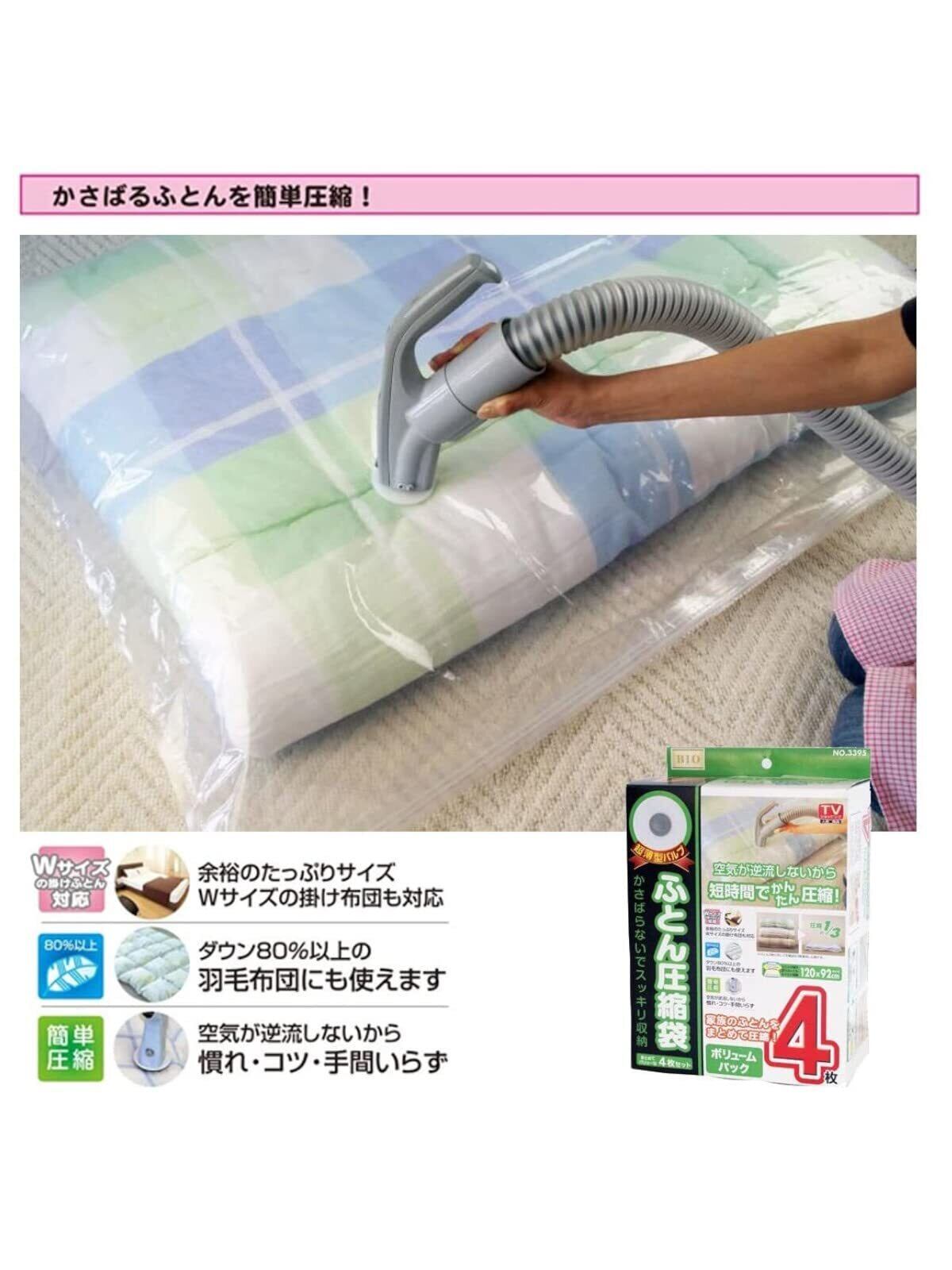 家族のふとんをまとめて圧縮できる、お得な4枚入!