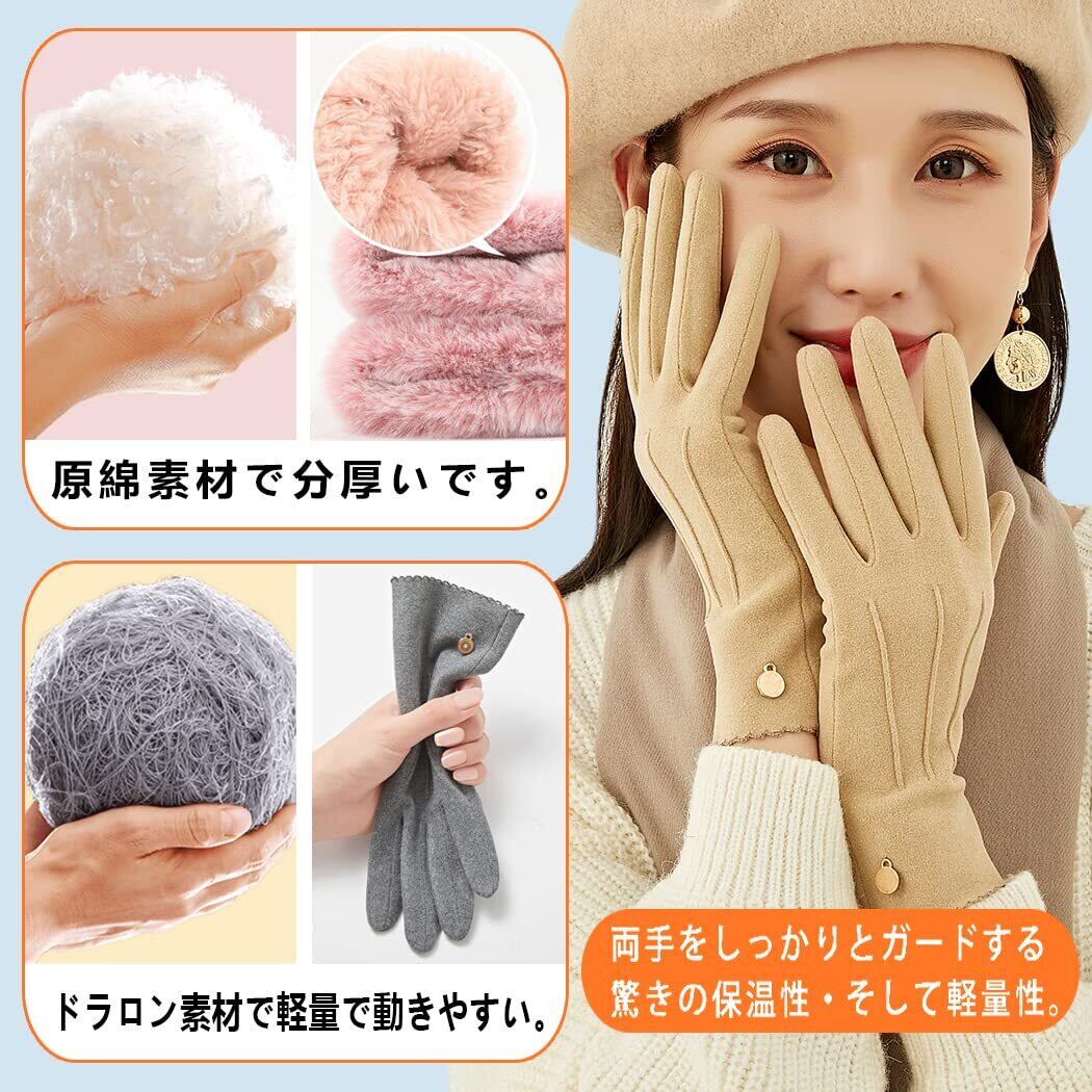 【2本指出し·タッチパネル対応手袋】レディース防寒手袋の親指と人差し指の先端が開閉式で、手袋をつけたまま素手でタッチスクリーン操作できるので文字入力等細かな操作がストレスなくなります。「スマホは反応なし、操作できない」などの心配はまったくありません。寒い屋外でも暖かくキープしながらスマホで写真を撮ったり、コンパスを使ったりことができます。ファッション性と実用性を兼ね備えた防寒手袋です。