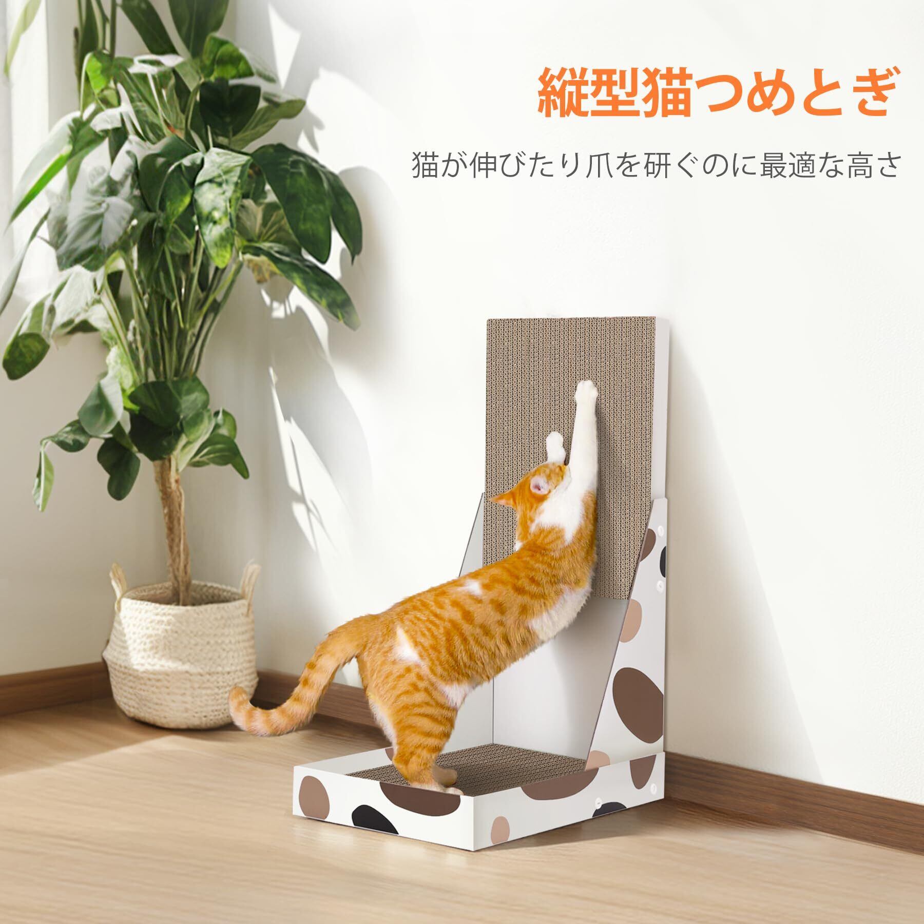 ComSaf 猫爪研ぎ 縦型 段ボール L字型 大型つめとぎ 猫 壁 箱付き 組み立て簡単 40*30*64cm 三花柄