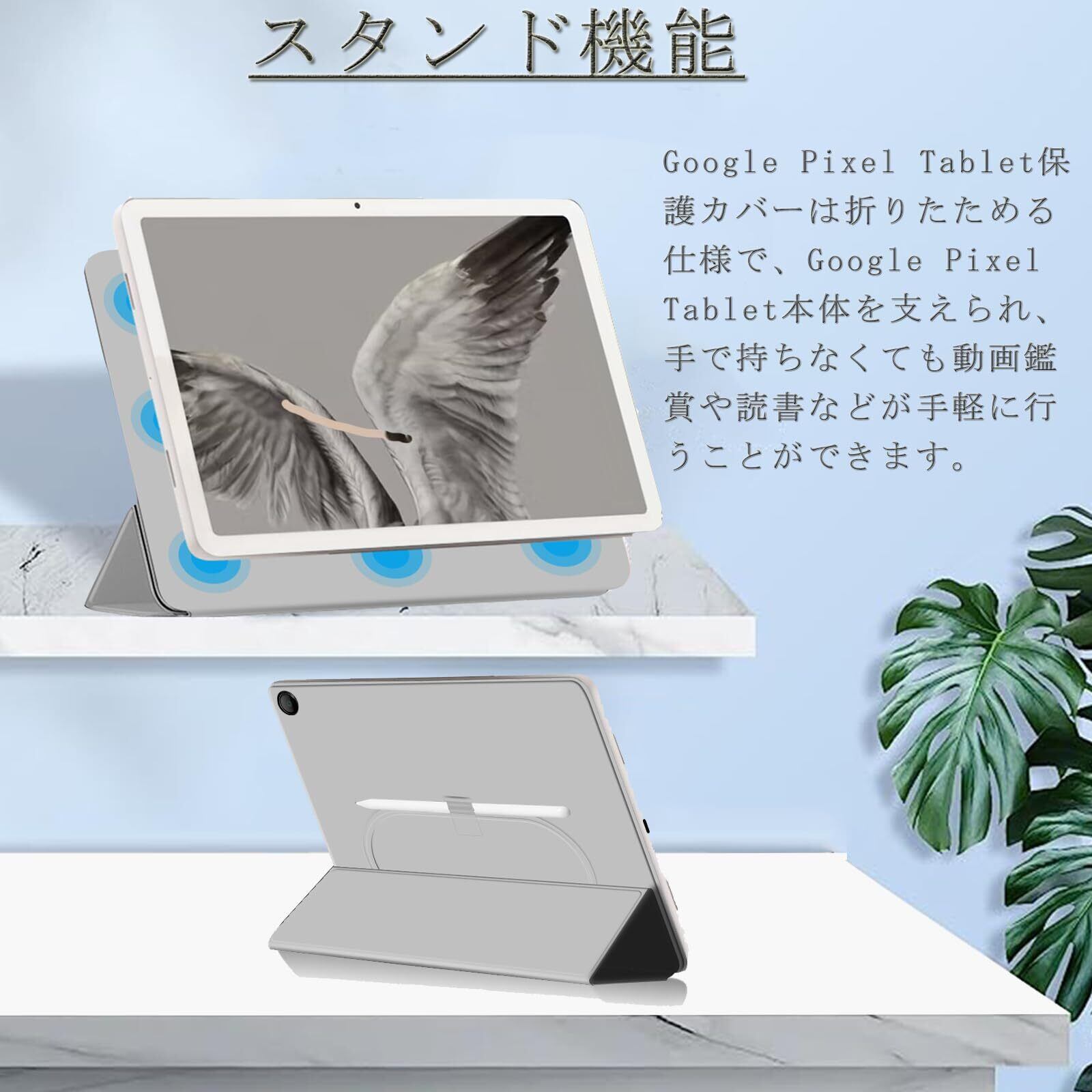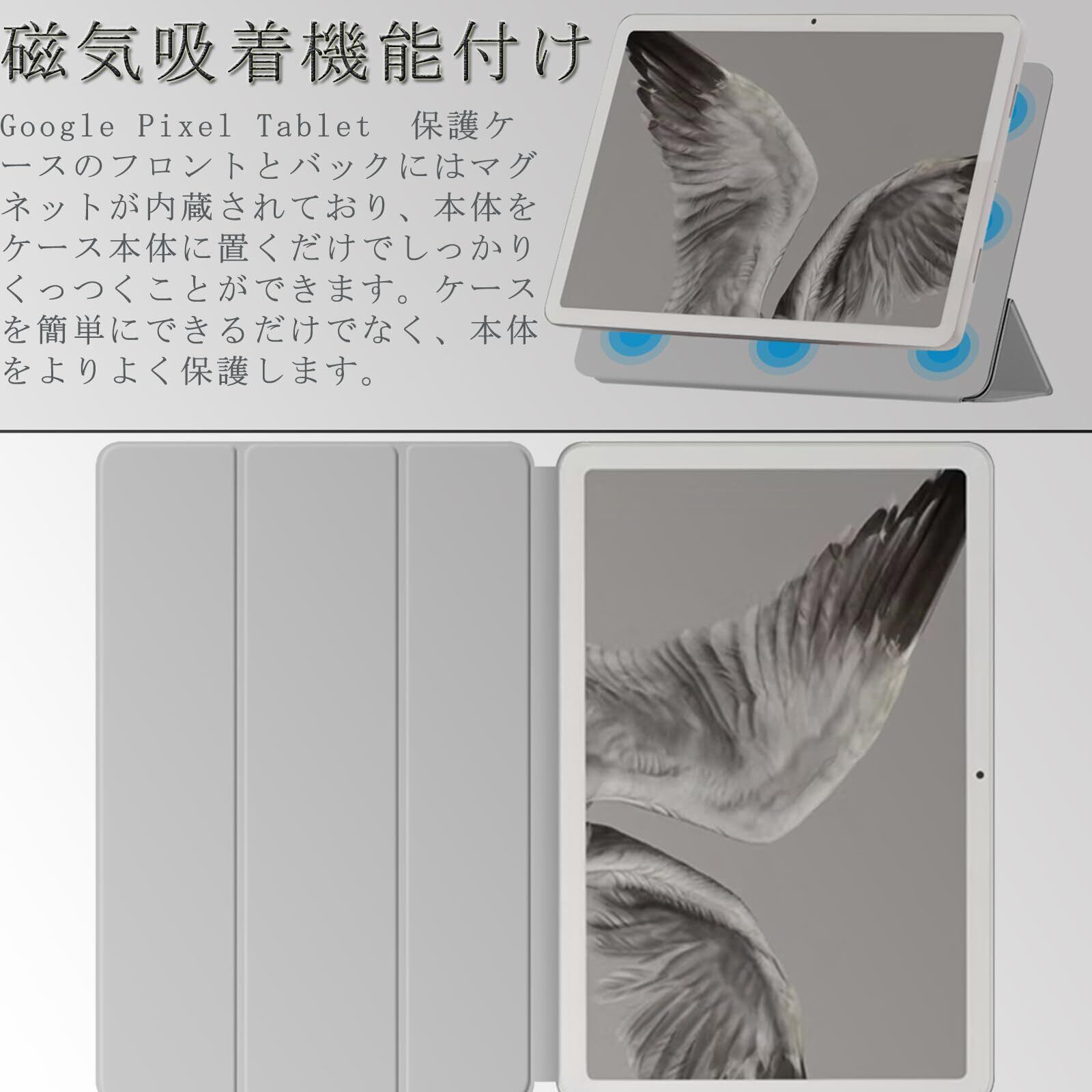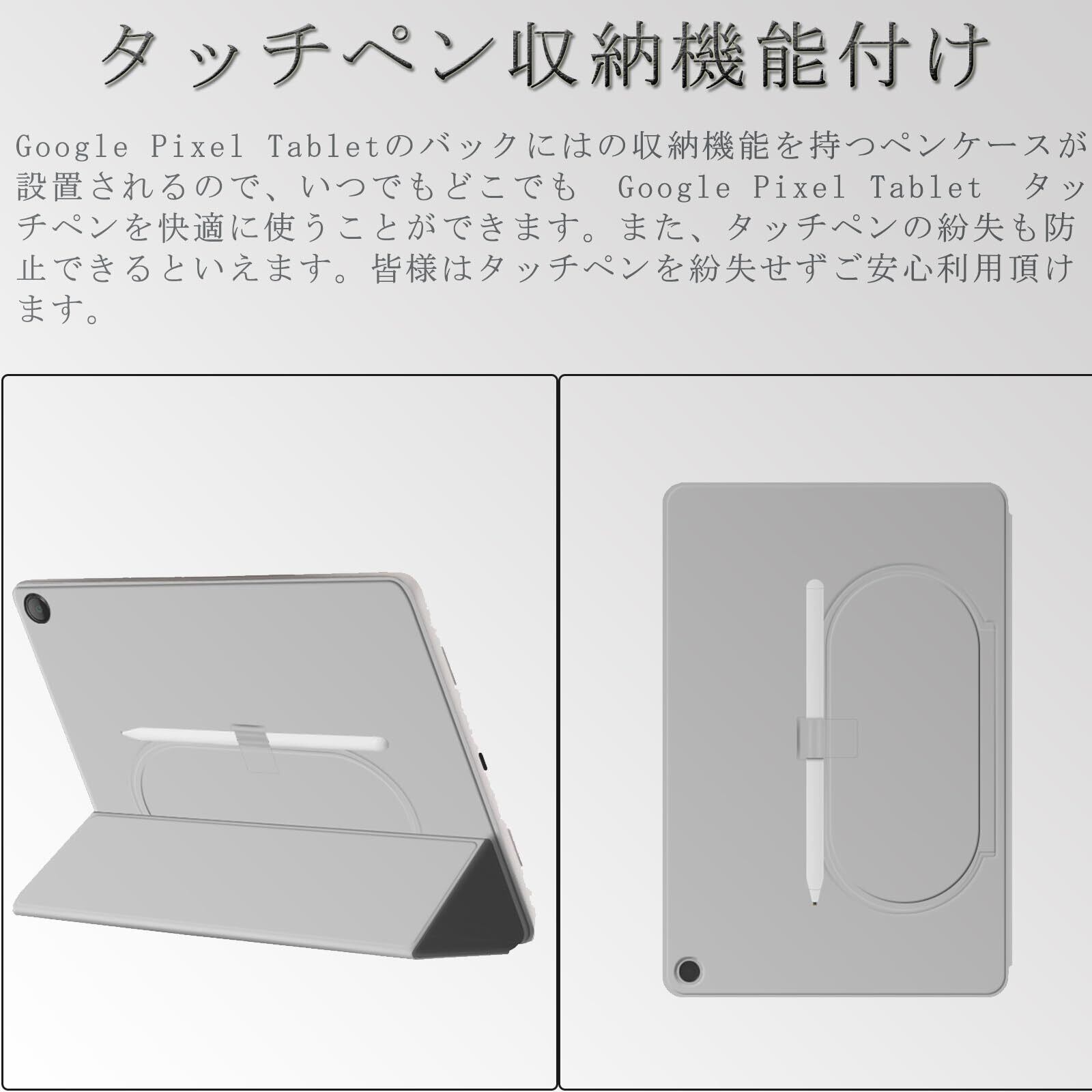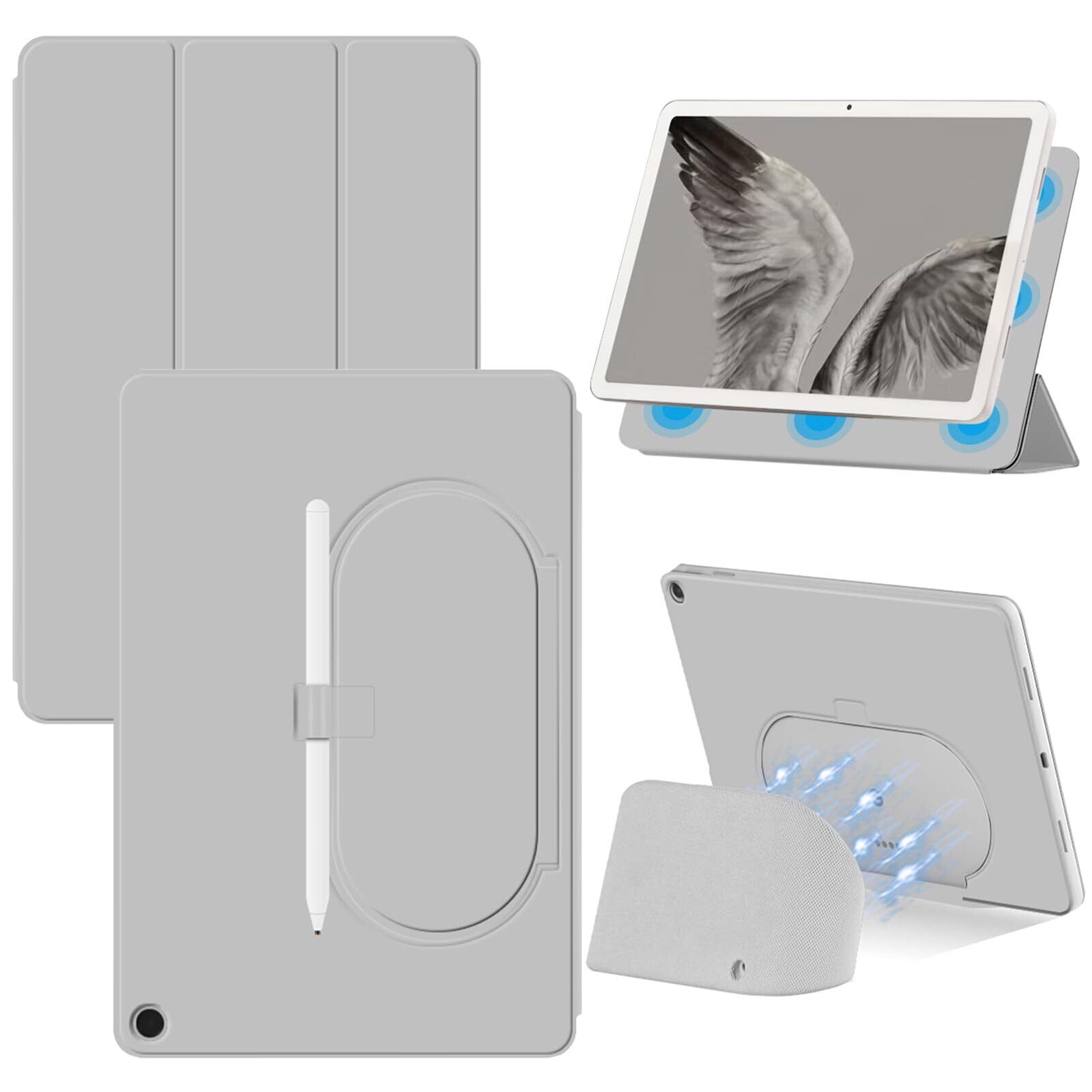 Miimall Google Pixel Tablet 2023 専用 ケース 【磁気吸着+タッチペン収納】グーグル ピクセル タブレット カバー PUレザー ワイヤレス充電対応 スタンド機能 傷・汚れ防止 薄型 軽量 手触りが良い Google Pixel Tablet 対応(ライトグレー)