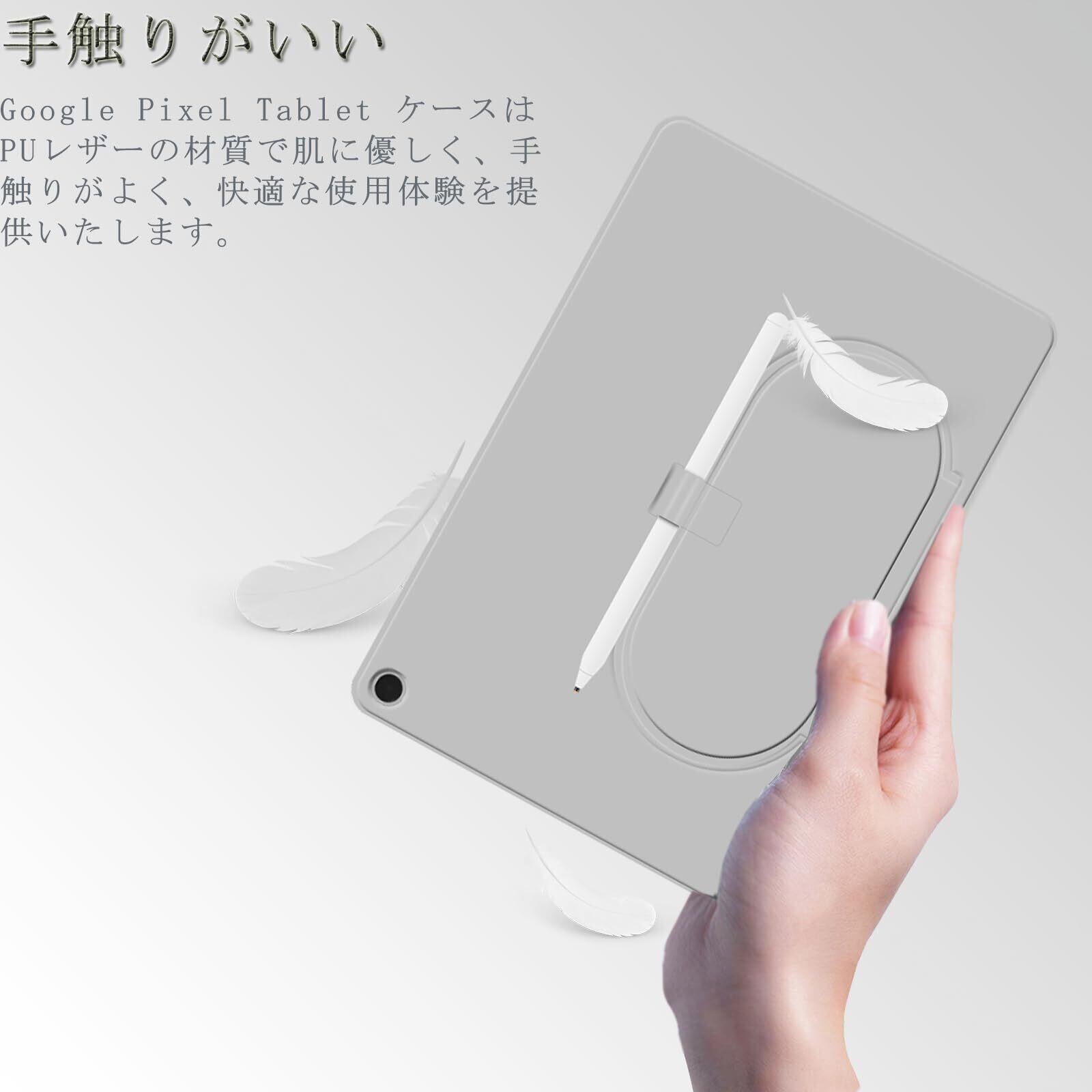 【新着商品】Miimall Google Pixel Tablet 2023 専用 ケース 【磁気吸着+タッチペン収納】グーグル ピクセル タブレット カバー PUレザー ワイヤレス充電対応 スタンド機能 傷・汚れ防止 薄型 軽量 手触りが良い Google Pixel Tablet 対応(ライトグレー)