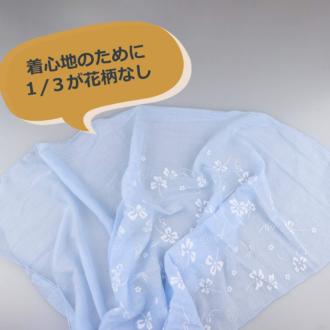 可愛い花柄:小さくて、白い花柄で、派手すぎずフレッシュな印象になります。軽やかな春色で、春らしくて、簡単なトップスでもおしゃれになりやすい。着心地のために、ストールの三分の一は花柄なしにします。