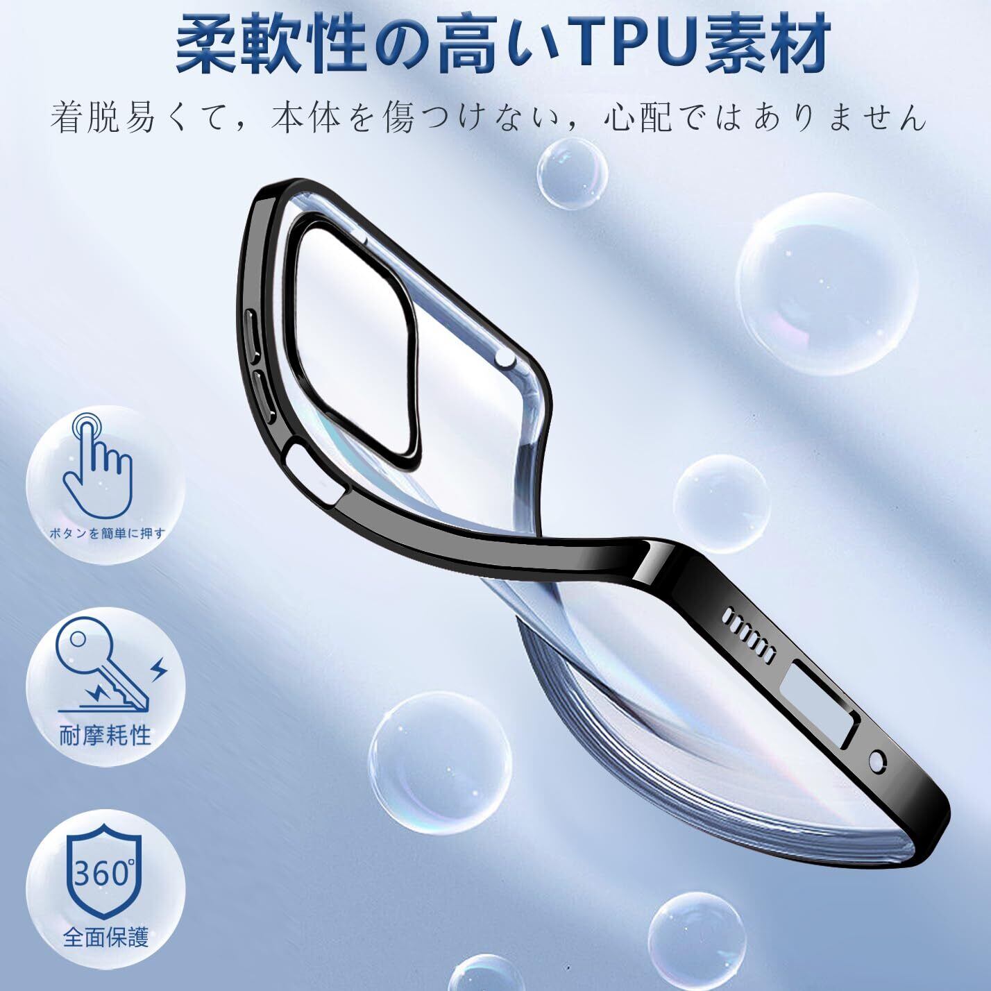 【抜群のフィット】ケースは柔らかいTPU素材を使用し、本体との擦れを防げ、ケースの着脱も簡単にできます。PCやガラス素材よりも柔軟ですが、通常のTPU素材よりも頑丈です。落下時には衝撃力を分散し、大事なデバイスを全面保護します。また、ケースは型どりを緻密に実施しており、本体に完璧にフィットするとともに、持ったときの圧倒的なフィット感も実現しています。