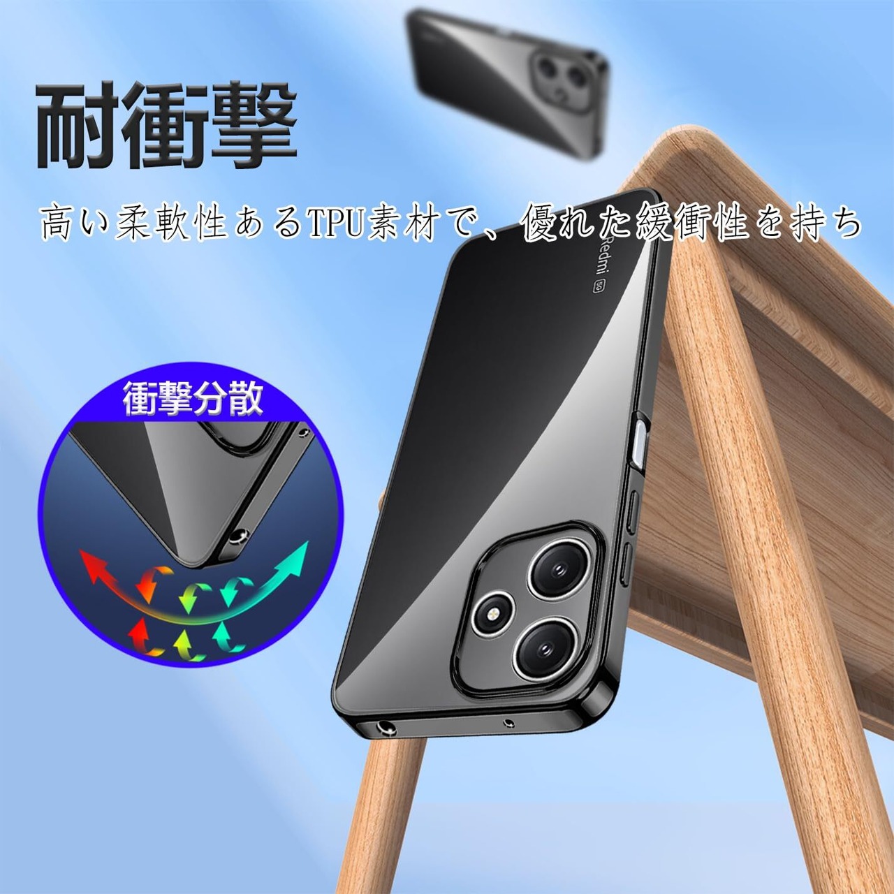 【在庫処分】Redmi 12 5G ケース クリア TPU 耐衝撃 XIG03 スマホケース 米軍MIL規格取得 透明 人気 (ブラック)