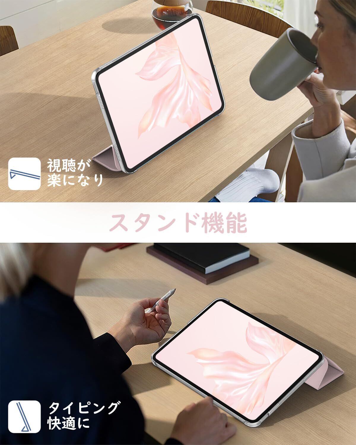「前蓋PUレザー+背面半透明PC」 ケースの蓋は耐久性に優れた高級PUレザーで仕上げられて、インナーの素材は柔軟なマイクロファイバー製で、端末が摩擦により発生する擦り傷を和らげます。iPadをしっかりと保護できます。背面ケースは無色半透明PC製で薄型一体式手帳型全保護仕様となっており、優しい手触り感じがして、取付やすくなっています。