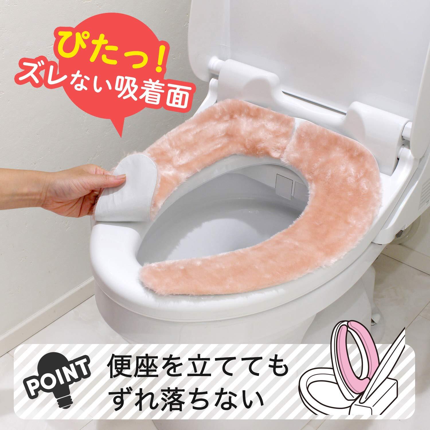 便座にのせるだけ!取りつけ簡単な吸着式便座カバー。面倒な取り替えの手間がかかりません。