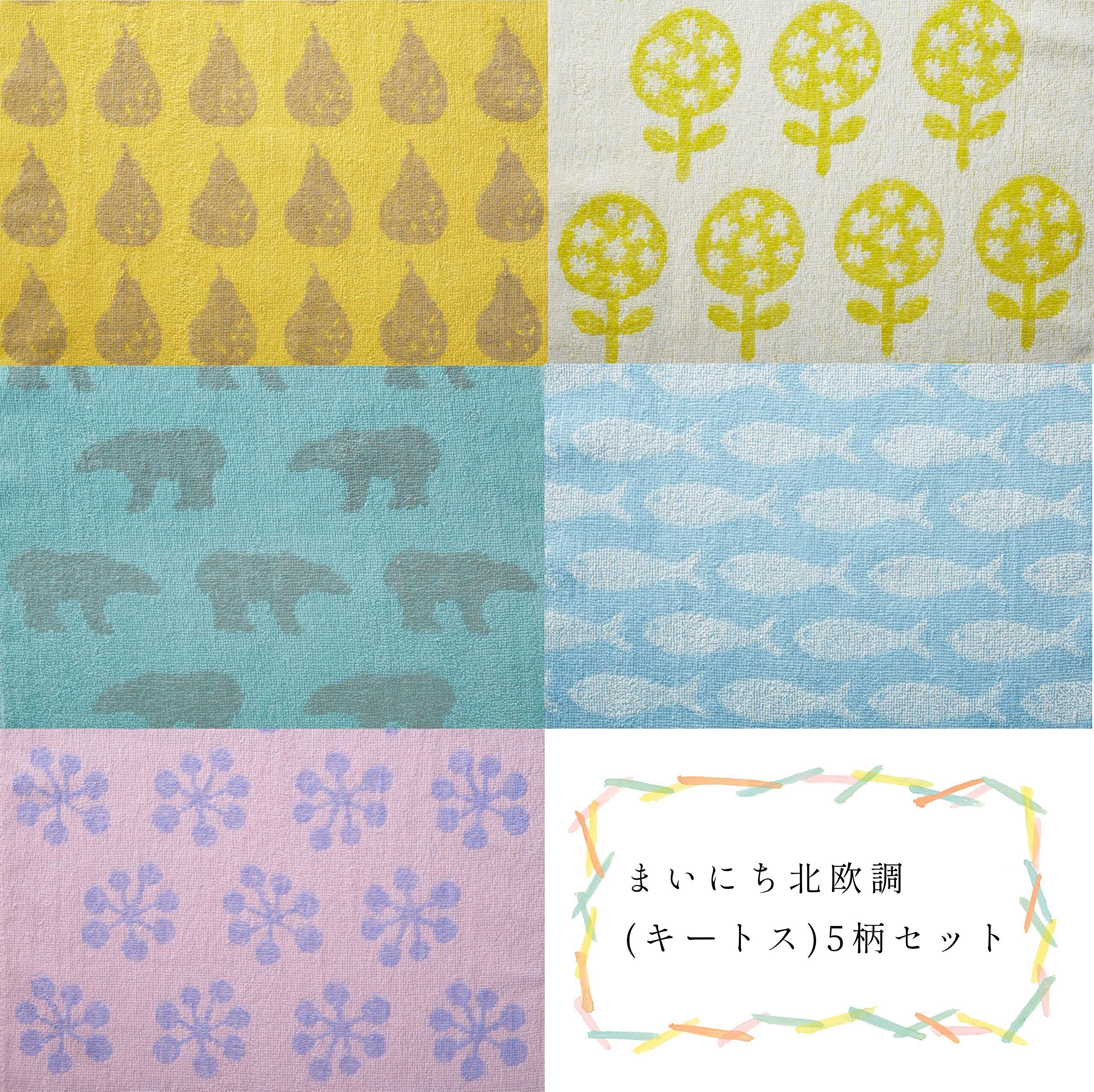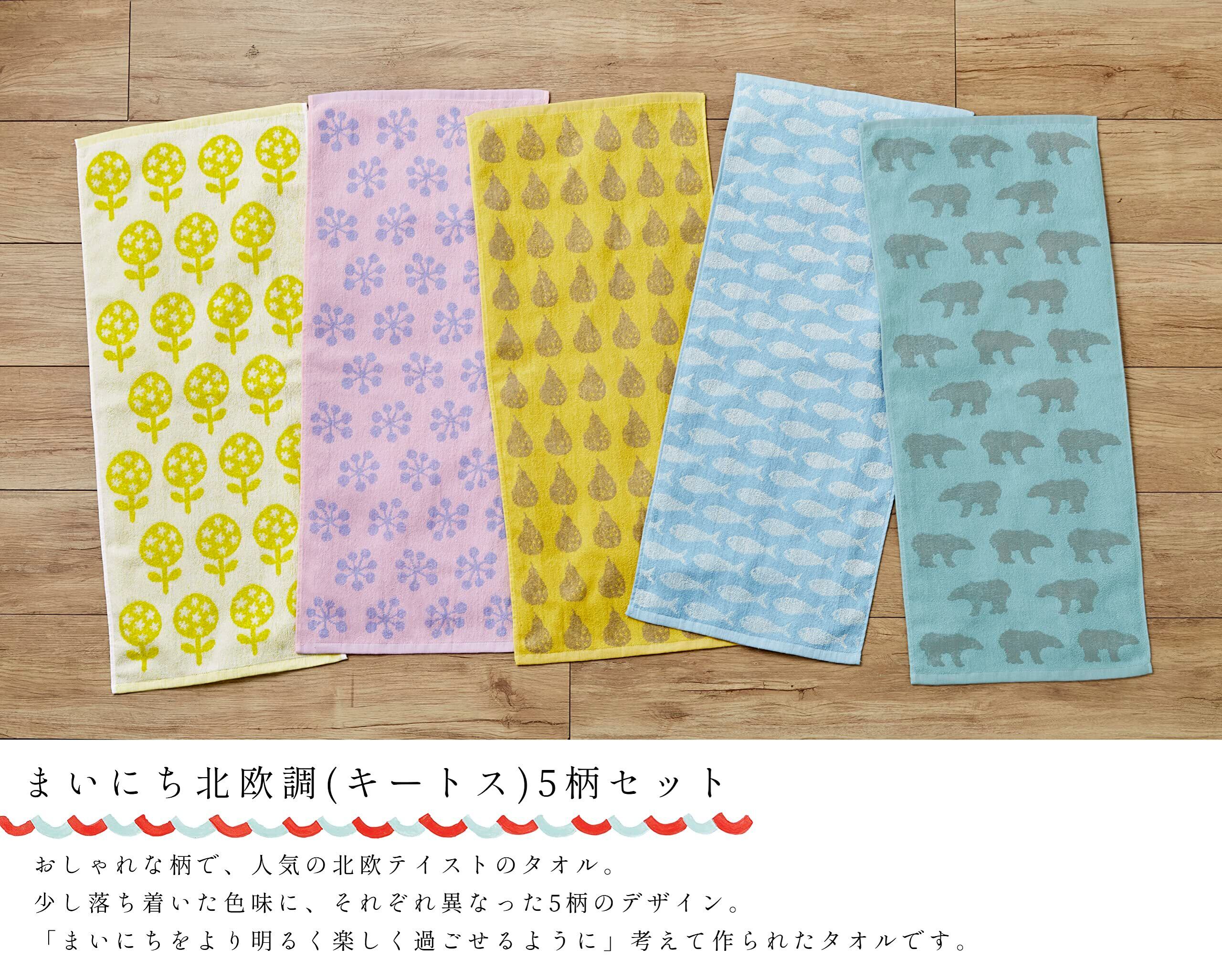 【2022最新】Kosugizen フェイスタオル まいにち北欧調 キートス 5色(5柄)各1枚入 34×80㎝ 北欧風モチーフ 乾きやすい薄手タイプ 5枚セット SV-2317-5