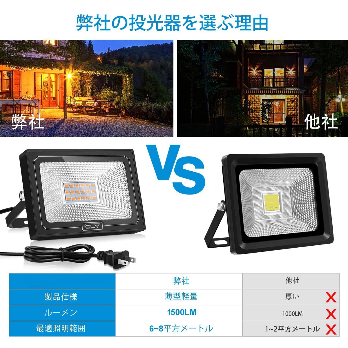 CLY 投光器 15W 電球色 屋外ウォールライト 玄関ライト 防犯ライト 作業灯 集魚灯 駐車場灯 看板灯 省エネ 高輝度 3000K 1500LM IP66防水 工場 体育館 倉庫 ナイター 壁掛け 庭園 ベランダ 廊下 屋外 天井照明用 1.5Mケーブル 日本語説明書付き PSE認証済み 2ピン口プラグ