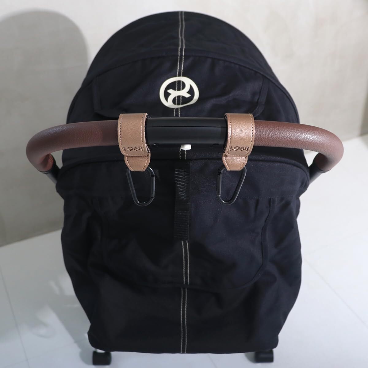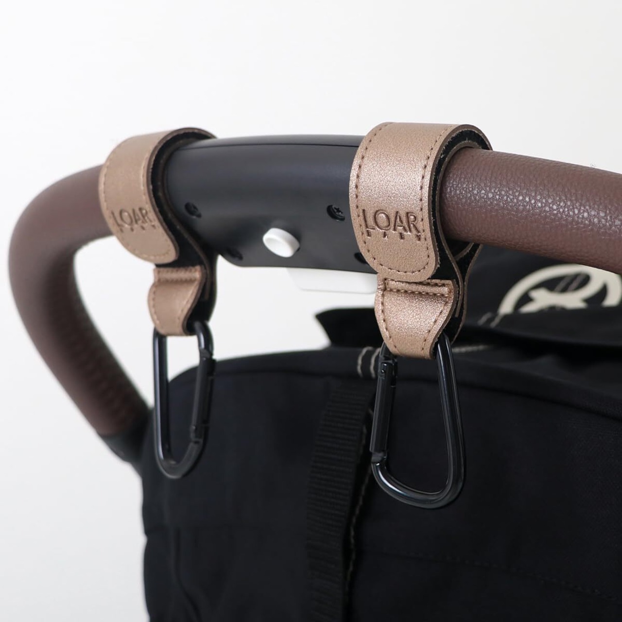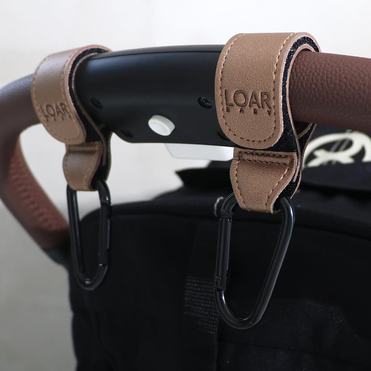 LOAR BABY(ロアベビー) ベビーカーフック カラビナ ベビーカーグッズ ベビーカー荷物掛け 2個セット カラビナフック おしゃれ 合皮 ギフト プレゼント (ブロンズ)