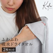 東和産業 ヘアドライタオル マイクロファイバー Kufu 2枚セット 吸水 速乾 グレー ヘアターバン 約80×35cm 洗顔 幅広 お風呂上がり プール 速乾 ヘアドライキャップ タオル 厚手