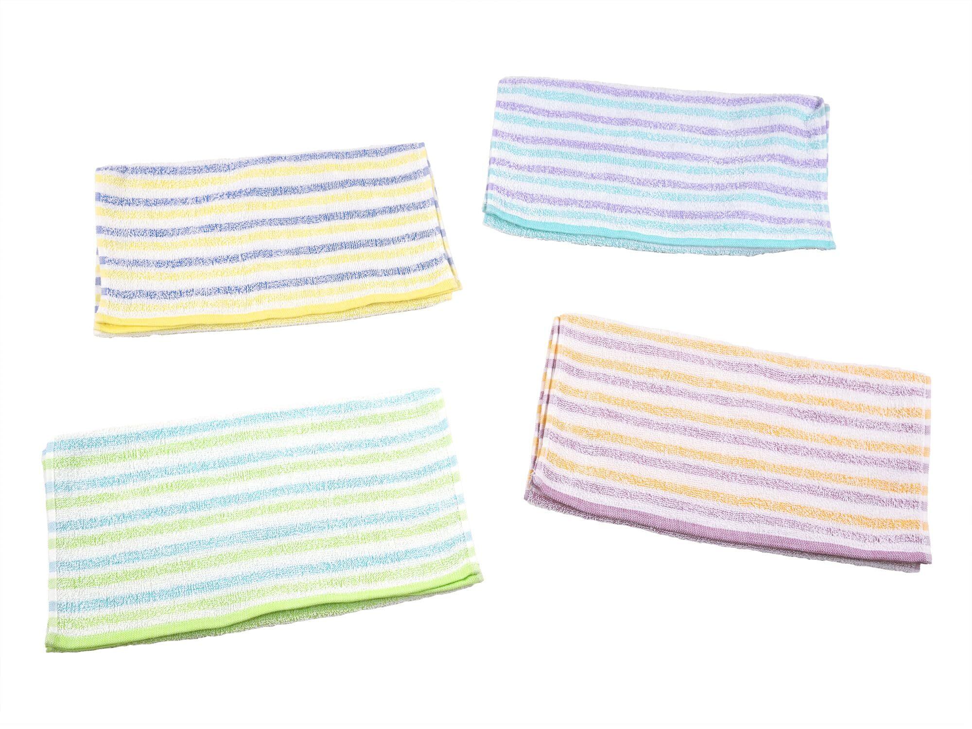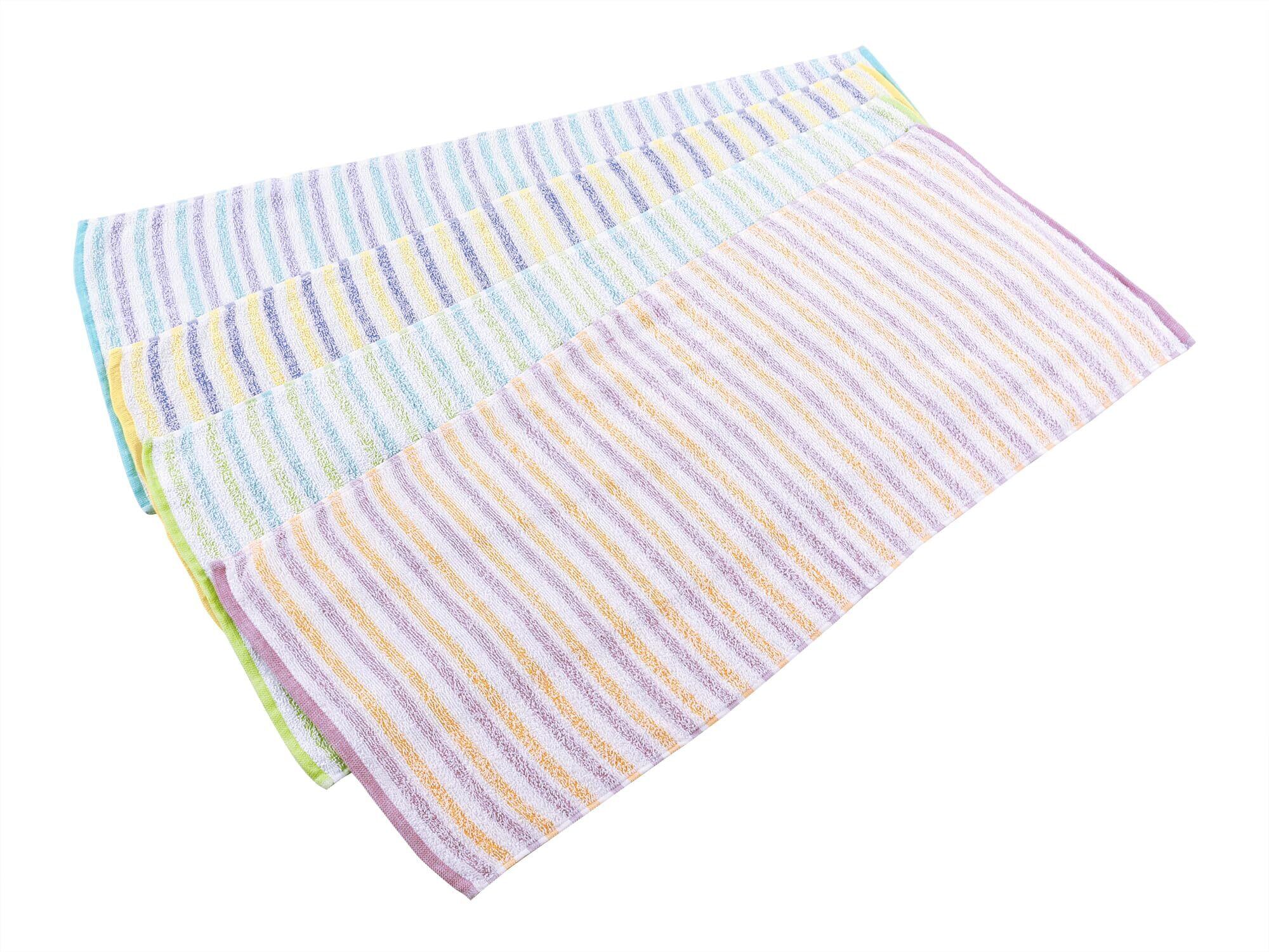 Kosugizen フェイスタオル 徳用パステルボーダー 4色各3枚入 34×80㎝ 乾きやすい薄手タイプ まとめてお得 12枚セット ST-1826-12