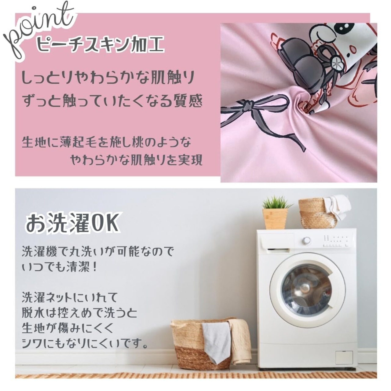 サンリオの人気キャラクターの布団カバー3点セット。ピーチスキン加工でなめらかな肌触り。