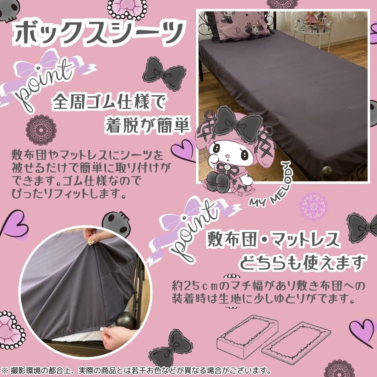 【新着商品】サンリオ(SANRIO) クロミ マイメロディ 真夜中のメロクロ ボリュームフリル 布団カバー3点セット 枕カバー シーツ 掛布団カバー シングル SB-677-S