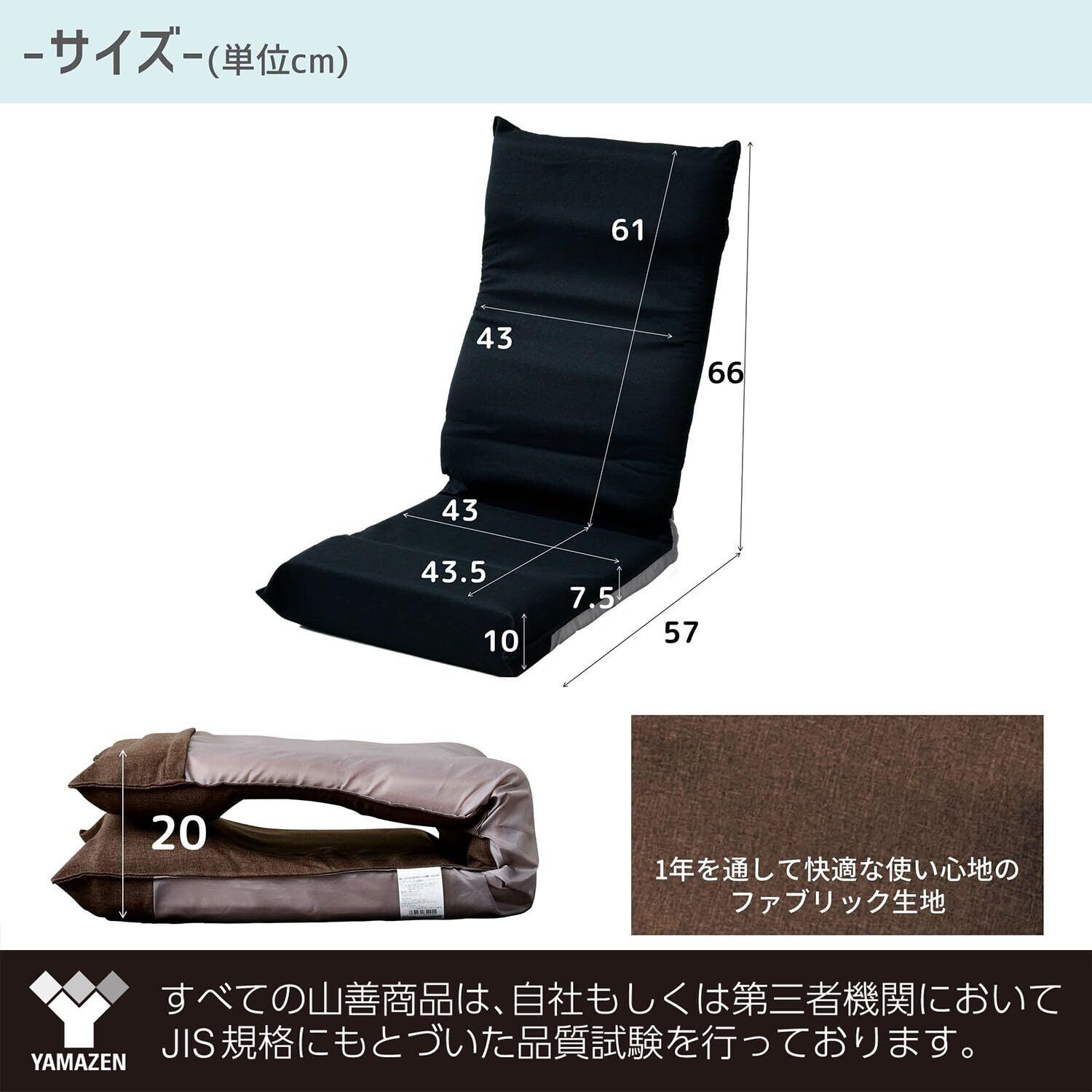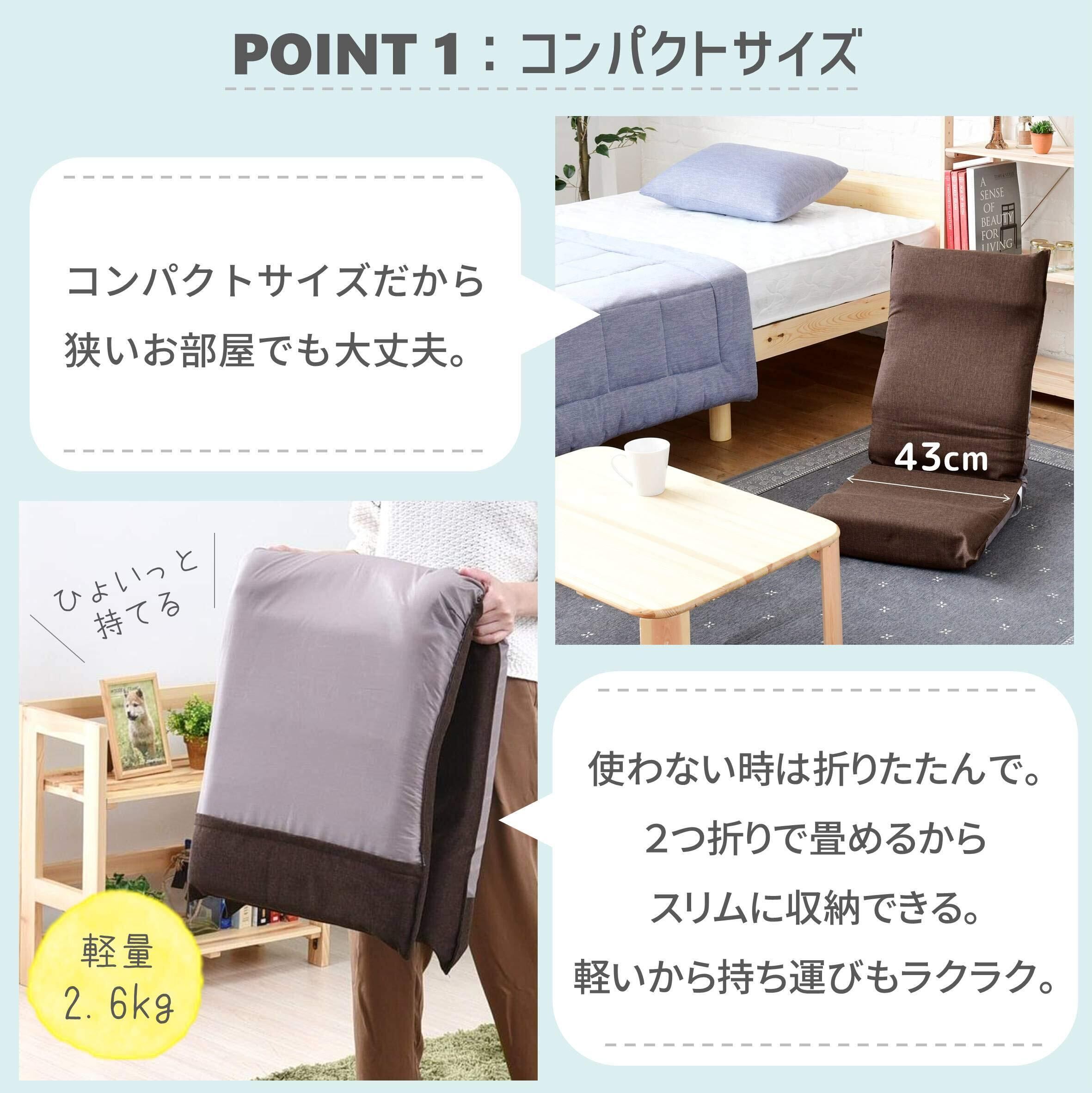 ●狭いお部屋でも使える、幅43cmのコンパクトな座椅子