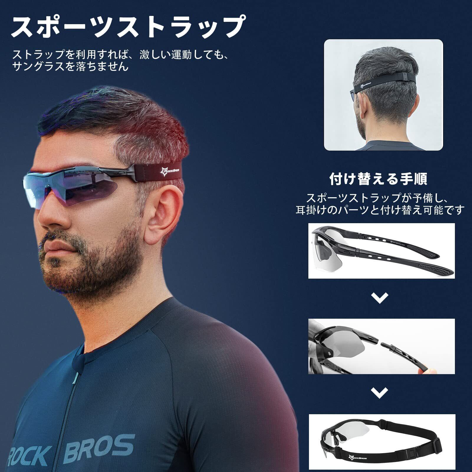 ROCKBROS(ロックブロス)調光サングラス 自転車 サングラス スポーツ 変色レンズ 紫外線カット 防風 軽量 耐衝撃 登山 野球 昼夜兼用 メガネ メンズ レディース