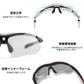 【メリット】1点スポーツバンドが予備し、耳掛けのパーツと付け替え可能です。激しい運動しても、サングラスが滑り落ちないです。1点近視インナーフレームが付属、近視者にも優しいです。デザイン性に優れています。※度付きレンズはお近くのメガネショップで別途装着してください。
